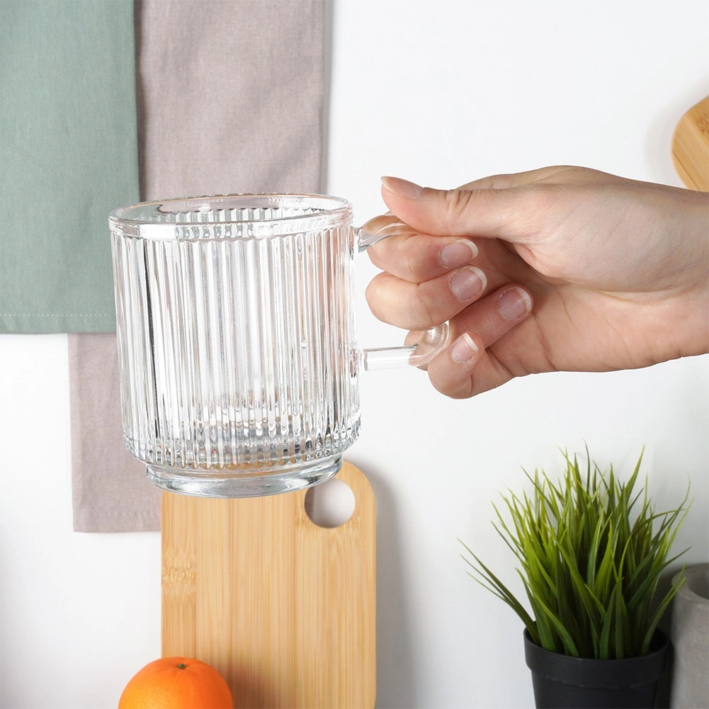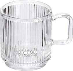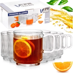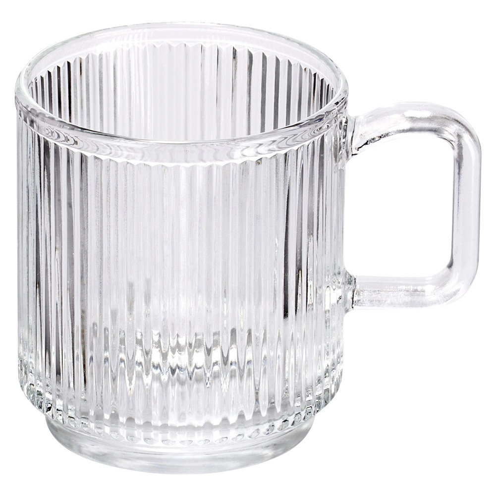 Atraskite universalias stiklines su ąsele, kurios puikiai tinka arbatai, kavai, vandeniui, limonadams ir sultims. Dėl rumbuotos struktūros jas malonu laikyti, jos neslysta ir ant stalo atrodo moderniai bei tvarkingai. Praktinė 350 ml talpa tinka kasdieniam naudojimui ir gėrimų serviravimui svečiams.