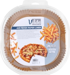 Išlaikykite gruzdintuvę nepriekaištingai švarią su vienkartiniais Vilde įdėklais. Šios kvadratinės popierinės formelės, kurių matmenys 23 × 23 cm, turi gofruotus kraštus, yra neprilipančios, atsparios riebalams ir vandeniui, tinka karšto oro gruzdintuvei, orkaitei ir mikrobangų krosnelei. Pakuotė po 50 vnt. palengvina gaminimą ir tvarkymą bei padeda sulaikyti riebalus ir trupinius.
