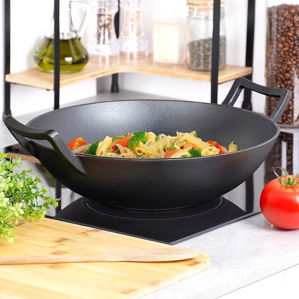 Tvirta 36 cm skersmens geležinė wok keptuvė iš CAST LINE serijos, prekės ženklo Vilde, skirta autentiškai Azijos virtuvei ir kasdieniam kepimui. Masyrus ketus puikiai kaupia ir tolygiai paskirsto šilumą, todėl pasieksite intensyvų apkepimą, greitą maišymą kepant ir sultingus rezultatus. Tinka visų tipų viryklėms, įskaitant indukcines, griliui ir orkaitei. Du tvirti laikikliai užtikrina saugų naudojimą.