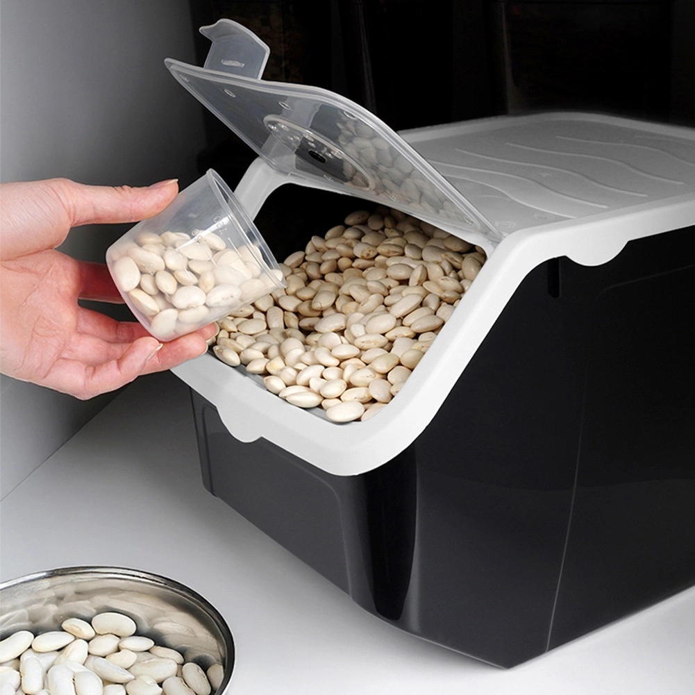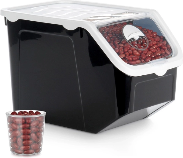 Konteineris idealiai tinka bulvėms, svogūnams, česnakams, taip pat makaronams, ankštiniams, naminių gyvūnų pašarui ar milteliniams mišiniams. Aukštos kokybės plastikas be BPA yra saugus sąlyčiui su maistu, tinkamas šaldikliui ir indaplovei. Patogi matuoklė su 40–160 ml žymėjimu palengvina tikslų dozavimą.