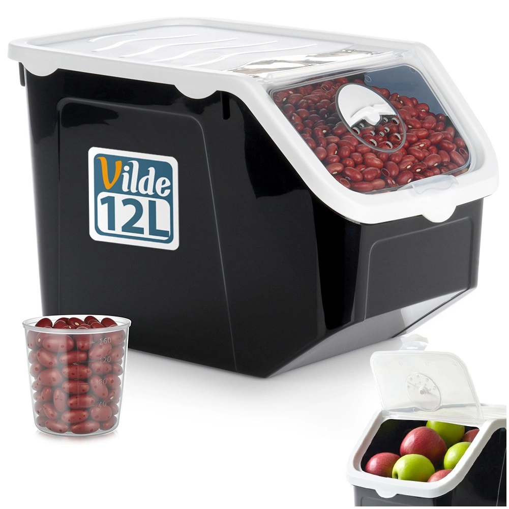 Praktiškas 12 l virtuvinis konteineris skirti vaisiams, daržovėms ir birioms maisto prekėms. Turi oro reguliavimą dangtyje, skaidrų atverčiamą vožtuvą patogiam dozavimui ir sandarinamą dangtį ilgesniam šviežumui. Komplekte yra matuoklė 40–160 ml. Pagaminta iš saugaus, BPA neįeinančio plastiko, tinkamo sąlyčiui su maistu, šaldikliui ir indaplovei, temperatūrinis atsparumas -20 °C iki 100 °C.