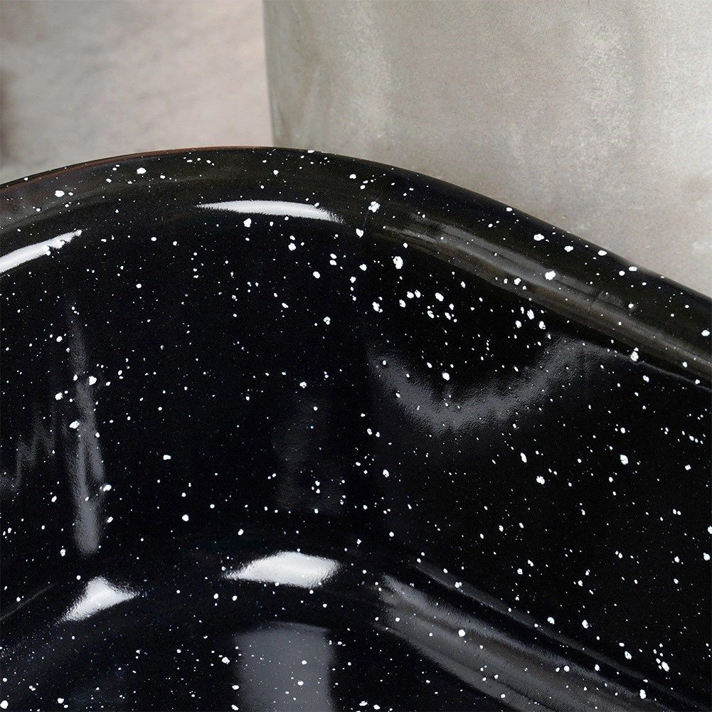 Patvarus ir universalus kepimo indas iš kokybiško emaliuoto plieno, juodos spalvos, yra puikus pasirinkimas kasdieniam gaminimui. Dėl didelės 8 l talpos ir vidinių matmenų 38 × 34 × 7 cm lengvai paruošite keptą mėsą, daržoves, namines picas su aukštu kraštu ar sotius apkepus. Emaliuotas paviršius yra draugiškas sveikatai ir tinkamas alergiškiems žmonėms.