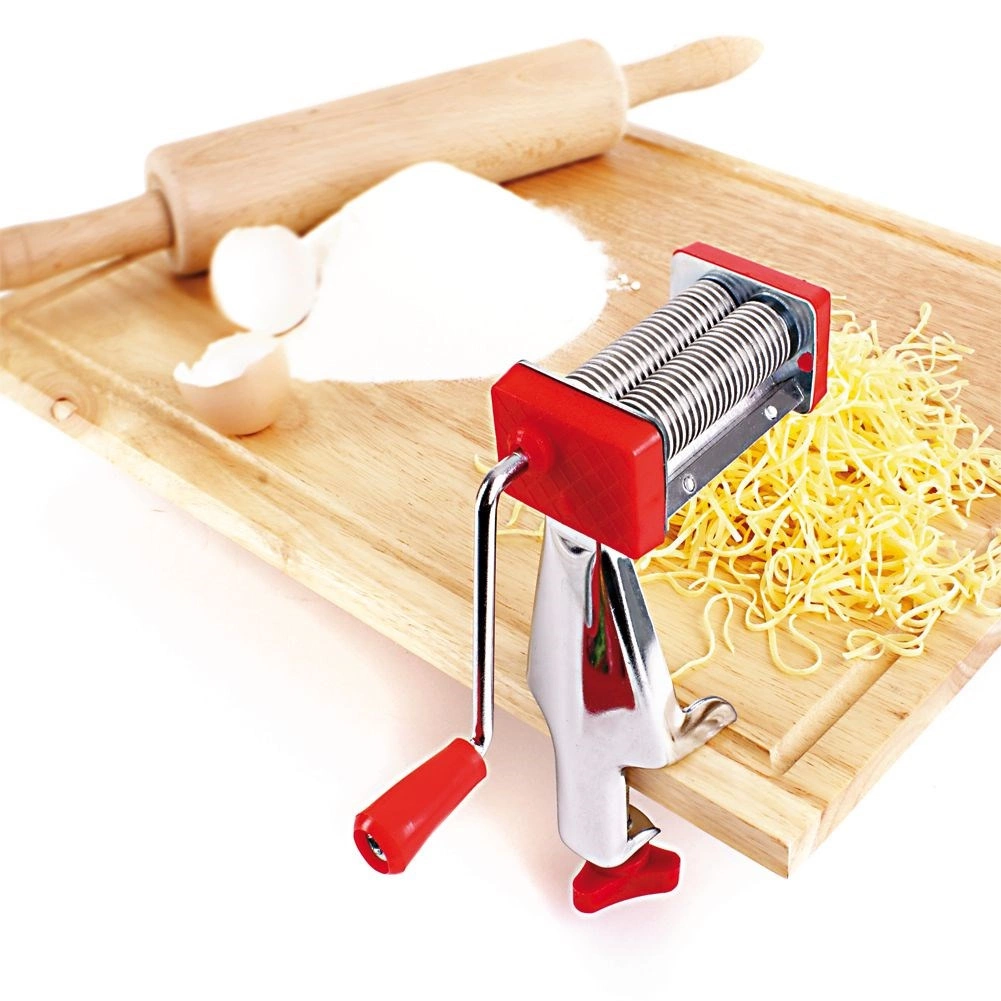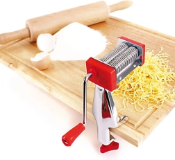 Tradicinė mechanika ir ergonomiška rankenėlė garantuoja lengvą valdymą be didelių pastangų. Didžiausias iškočiotos tešlos lakšto plotis – 6 cm, aparato matmenys – 19 × 9 × 18 cm. Raudoni akcentai ant rankenėlės ir priedų suteiks jūsų virtuvei stiliaus. Ilgaamžiškumui užtikrinti rekomenduojame nemplauti indaplovėje.