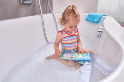 Lengva konstrukcija plūduriuoja vandenyje ir yra saugi žaisti vonioje ar baseine. Vaikai lengvai varto puslapius ir atranda spalvas bei formas.