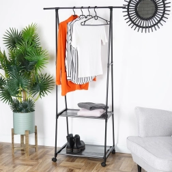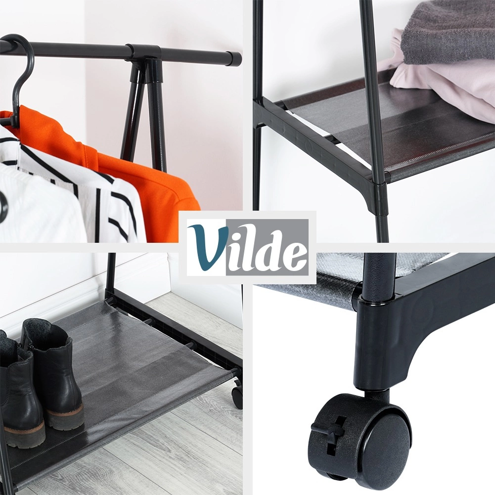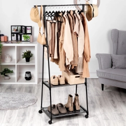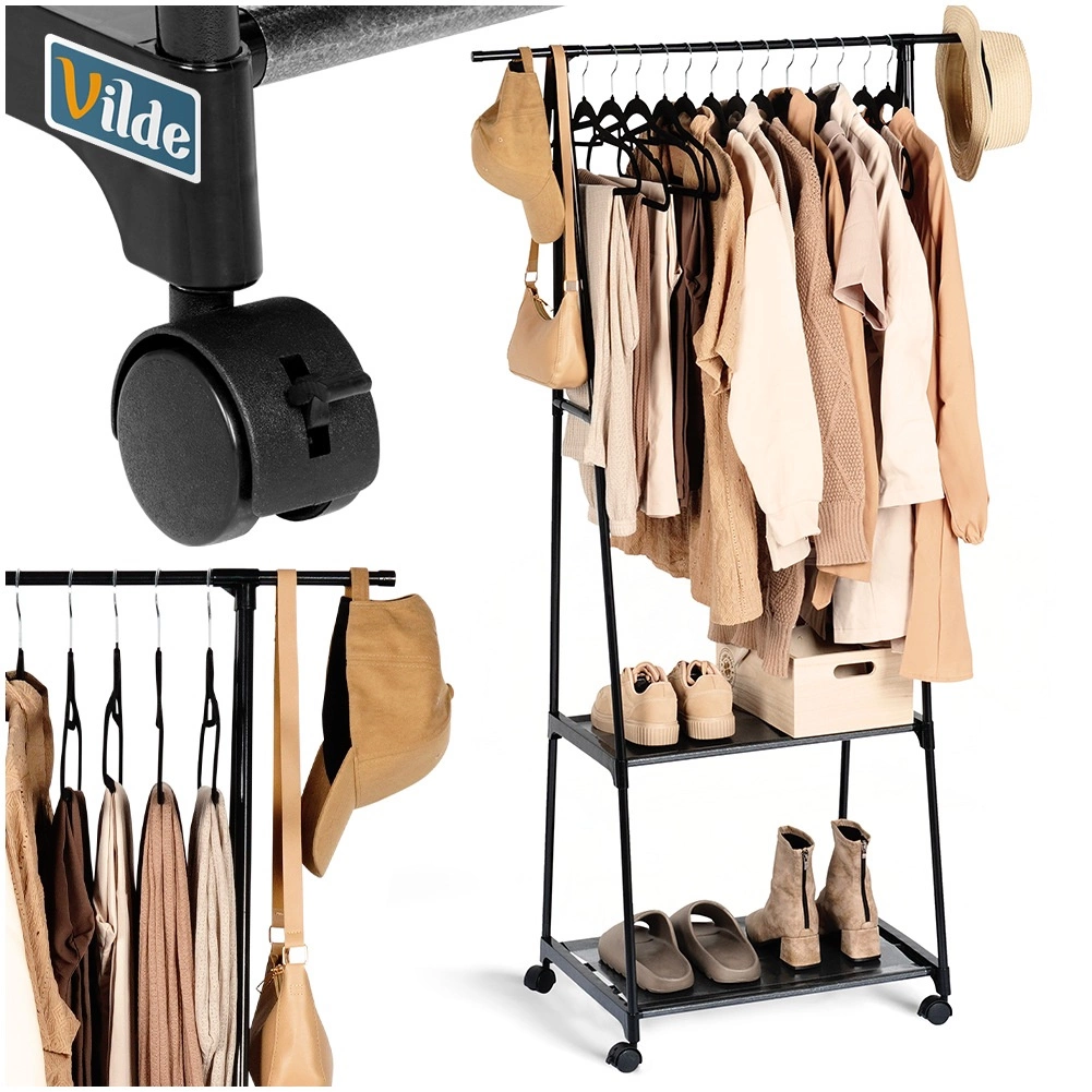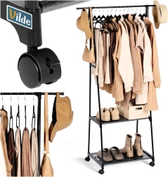 Dėl keturių ratukų (du su stabdžiu) kabyklą lengvai perkelsite ten, kur jos reikia – į prieškambarį, miegamąjį, drabužinę, biurą ar parduotuvę. Siauri gabaritai taupo vietą, tačiau suteikia stebėtinai daug talpos.