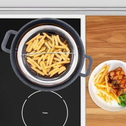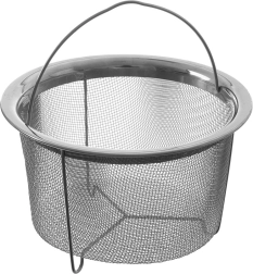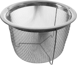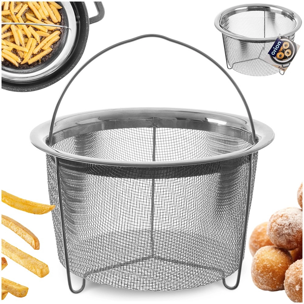 Smulki nerūdijančio plieno sietelė greitai nuvarvina aliejų ar vandenį, o maistas lieka viduje. Idealu bulvytėms, svogūnų žiedams ir daržovėms.