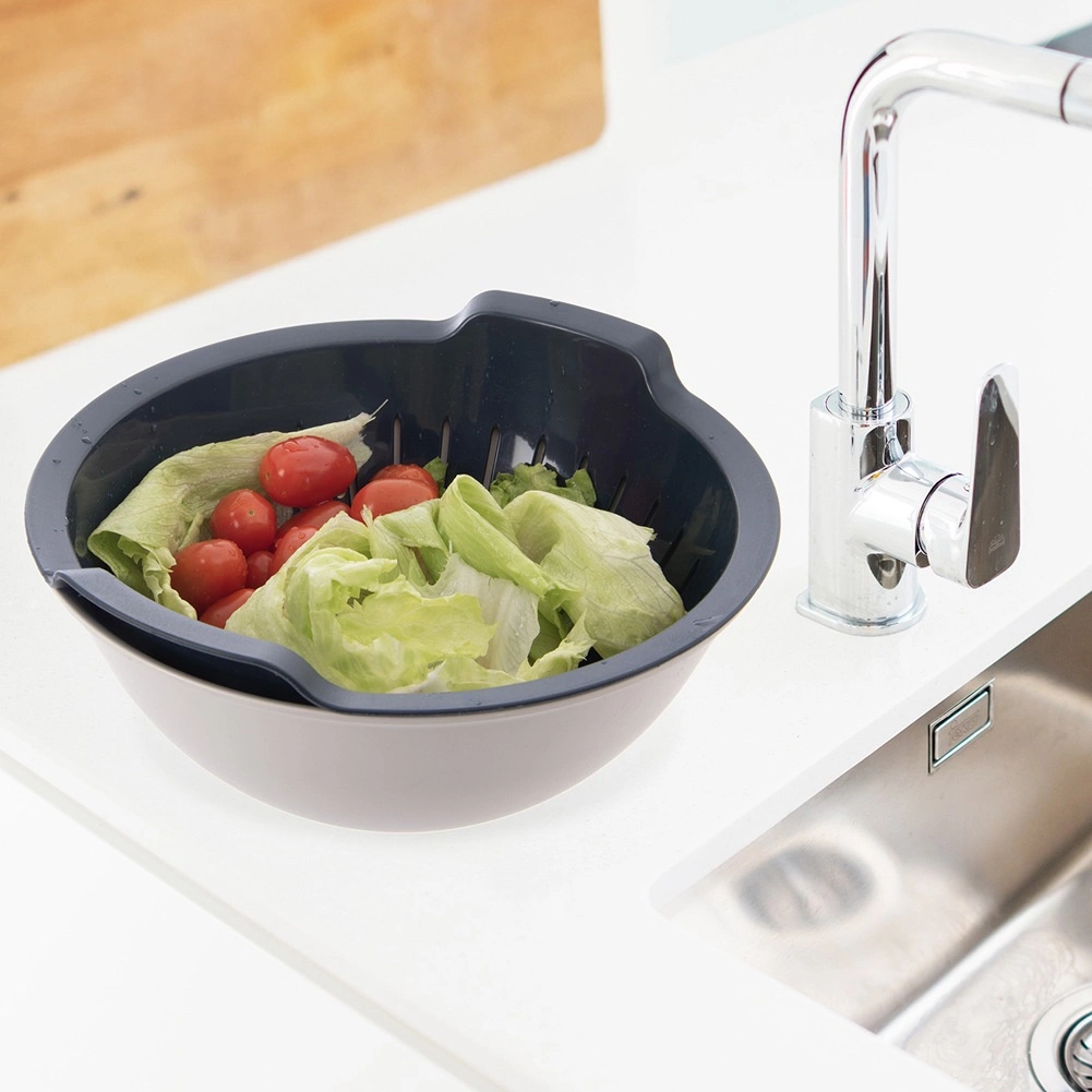 Praktiškas 2 viename sietuvas + dubuo rinkinys palengvina kasdienį vaisių, daržovių ar makaronų plovimą, skalavimą ir nusunkimą. Išimamas sietuvas leidžia vandeniui laisvai nubėgti į dubenį – be betvarkės. Pagaminta iš kokybiško, BPA neturinčio plastiko, patvaru ir lengva. Tinka plauti indaplovėje, o dubuo taip pat tinkamas mikrobangų krosnelei.
