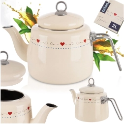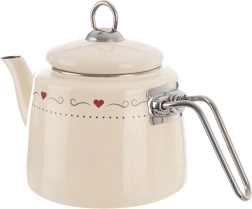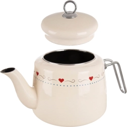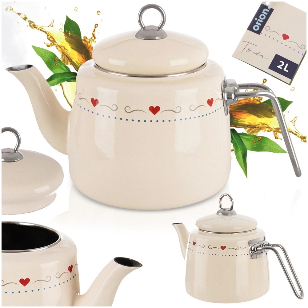 Elegantiškas emaliuotas virdulys, kurio talpa 1,6 l, kreminės spalvos su subtiliu širdelių motyvu. Pagamintas iš kokybiško emaliuoto plieno su nerūdijančio plieno briauna ir rankena. Tinka visų tipų viryklėms, įskaitant indukcines, ir indaplovei. Praktiškas dangtelius su laikikliu palengvina vandens papildymą. ORION – originalus produktas, atitinkantis Europos standartus.