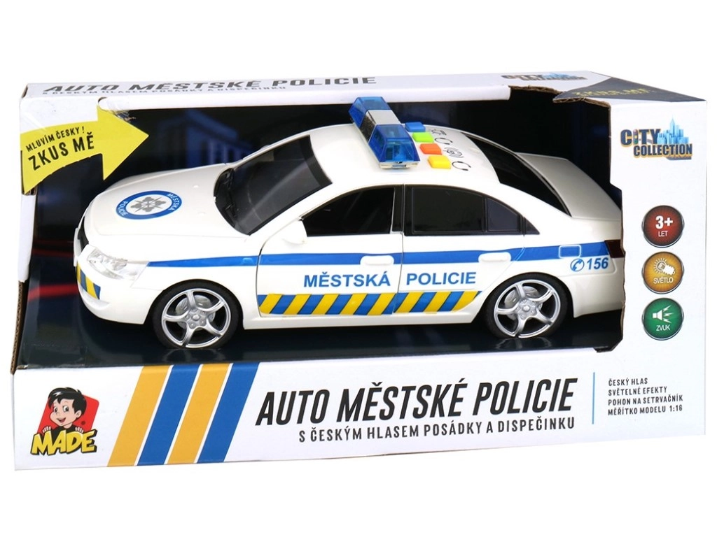 Šis detaliai sukurtas miesto policijos automobilis siūlo autentišką policinės tarnybos patirtį. Vaikai mėgausis dinamišku žaidimu su švyturėlio šviesos efektais ir realistiškais čekų pranešimais, tokiais kaip dispečerio nurodymai ir įgulos pranešimai. Tinka tiek savarankiškam žaidimui, tiek bendriems nuotykiams.