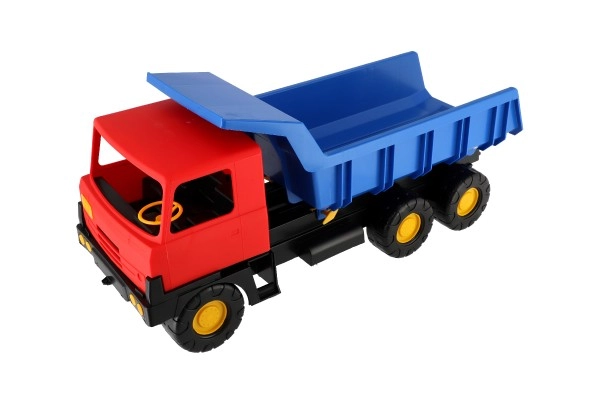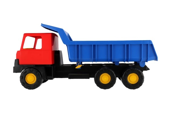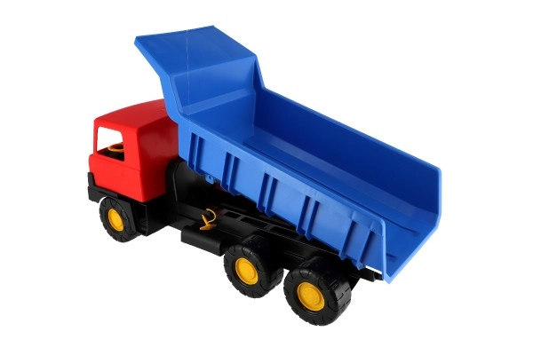 Ryškios spalvos – mėlynas kėbulas ir raudona kabina – traukia akį iš pirmo žvilgsnio ir skatina žaisti tiek namuose, tiek lauke. Sunkvežimis turi stabilius ratus, užtikrinančius sklandų važiavimą įvairiais paviršiais, o 75 cm dydis suteikia daug erdvės kūrybingam žaidimui.