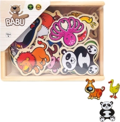 Rinkinyje rasite tokius gyvūnus kaip žirafa, delfinas, pingvinas ir daug kitų. Magnetukai ne tik linksmina, bet ir moko – tai puiki priemonė pažinti gyvūnus ir spalvas.