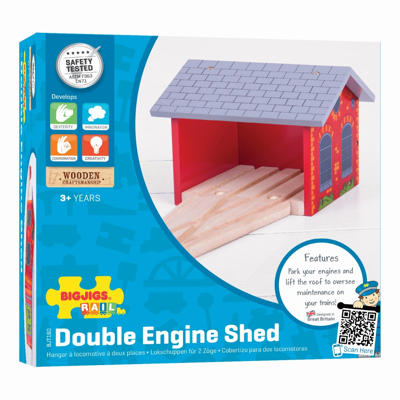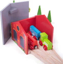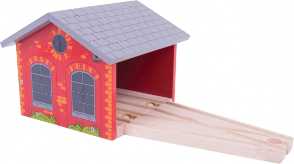 Praktiškas medinis depo dviem traukiniams – idealus kiekvienos medinės geležinkelio trasos priedas. Kompaktiška konstrukcija su įvažiavimo bėgiu leidžia lengvai priparkuoti iki dviejų sąstatų, palaikyti tvarką ir praplėsti žaidimo galimybes. Pagaminta iš kokybiškos medienos, atitinkančios Europos saugos standartus, skatina vaikų vaizduotę ir įgūdžius. Suderinama su dauguma medinių geležinkelių, patvari konstrukcija ir lengva integracija į trasą.
