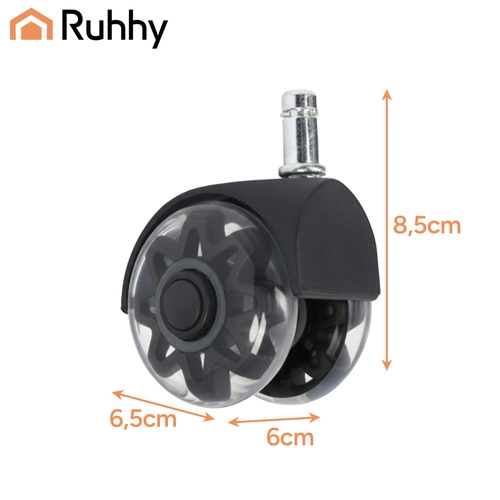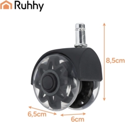 Pakeiskite senus ratukus į modernius ir tylius RUHHY 2,5" ratukus. Jie užtikrina tylią eigą (mažiau nei 25 dB), sklandų 360° judėjimą ir grindų apsaugą be įbrėžimų dėl minkšto PU protektoriaus. Universali ašis 11 × 22 mm ir greitas montavimas be įrankių daro juos idealiu pasirinkimu laminatui, parketui, plytelėms ir kilimams.