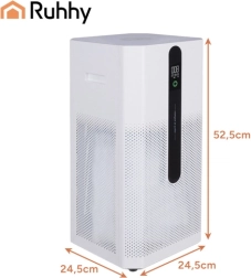 Išmanus RUHHY Ioniqs oro valytuvas sujungia trijų pakopų filtraciją (priešfiltris + HEPA H12 + aktyvioji anglis) ir jonizaciją, kad pašalintų dulkes, žiedadulkes, PM2.5 smogą, dulkių erkes, bakterijas, virusus ir nemalonius kvapus. Dėl CADR 370 m³/val. greitai išvalo orą svetainėje, miegamajame ir biure, o spalvinis oro kokybės indikatorius nuolat informuoja apie aplinkos būklę.