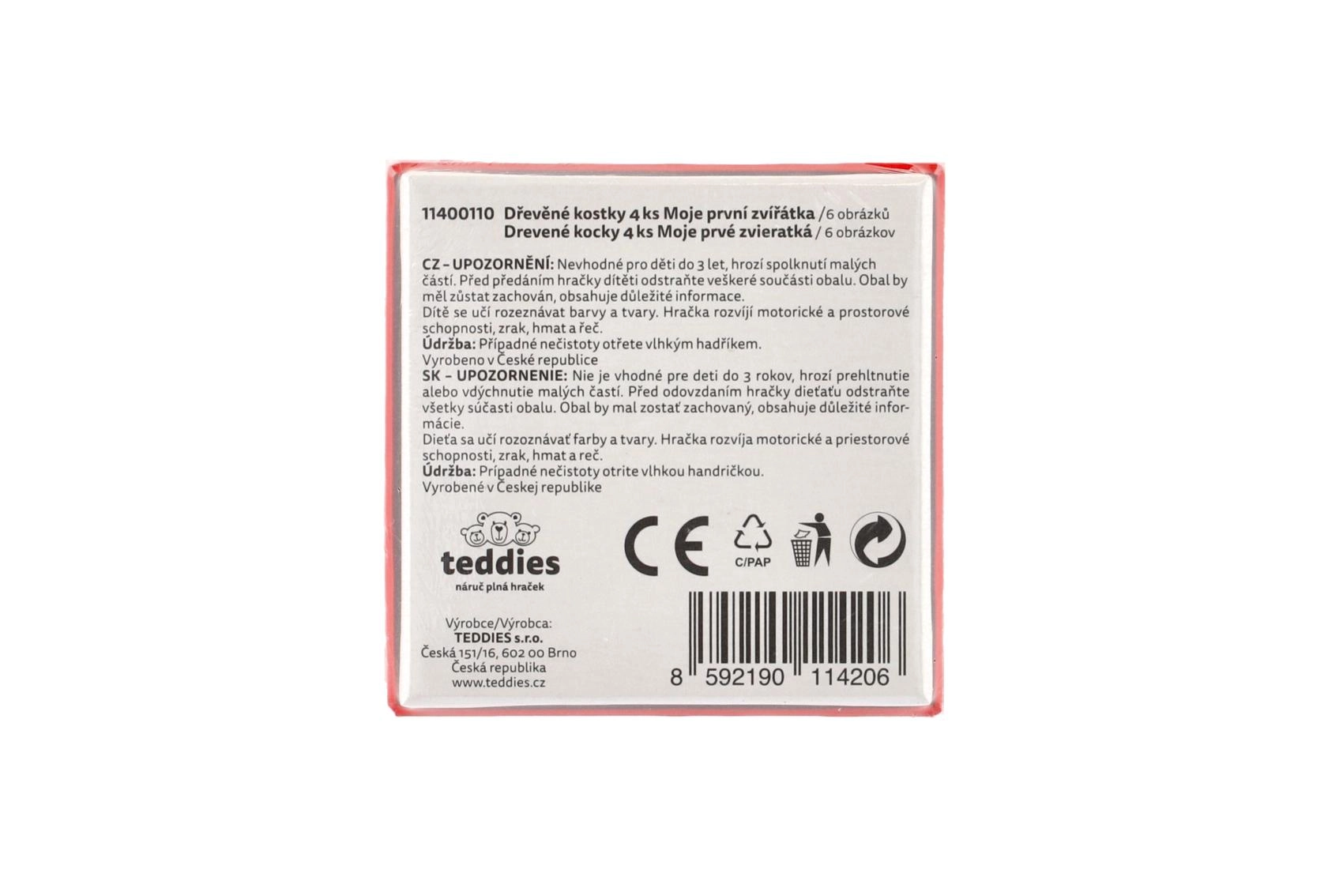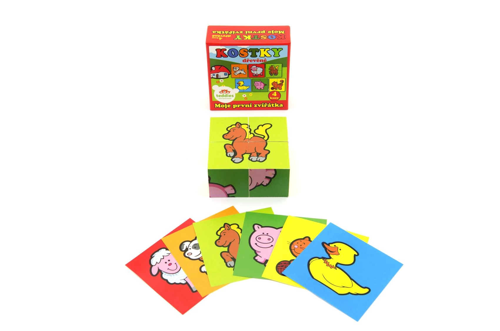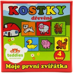 Atraskite pramogą ir mokymąsi su mediniais paveikslėlių kubeliais TEDDIES. Rinkinyje yra 4 tvirti kubeliai, iš kurių sudėsite net 6 skirtingus naminių gyvūnėlių paveikslėlius. Žaislas lavina smulkiąją motoriką, loginį mąstymą ir vaizduotę, o dėl patvaraus medinio atlikimo atlaiko kasdienį žaidimą. Pagaminta Čekijoje.