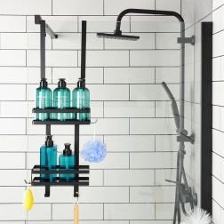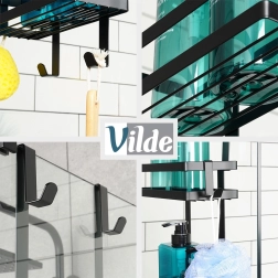 Palaikykite dušo zoną tvarkingą ir stilingą. Pakabinama lentynėlė industrinio lofto dizaino suteikia du laikymo aukštus šampūnams, kondicionieriams ir muilams, o keturi praktiški kabliukai pravers kempinėlėms, šepetėliams ar skustuvams. Milteliniu būdu dengtas juodas metalas yra tvirtas ir atsparus korozijai, todėl puikiai tinka kasdieniam naudojimui.