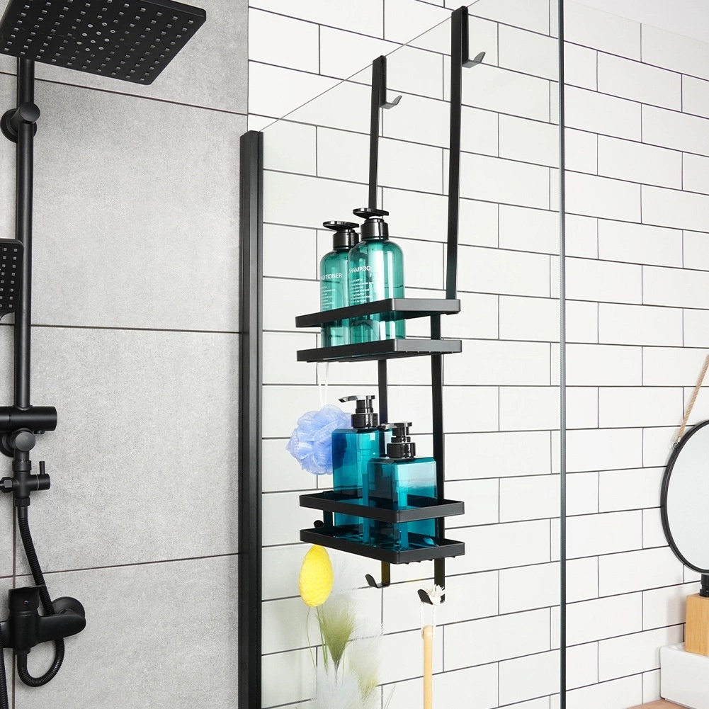 Pakabinsite per akimirką, nes yra ilgi kabliai. Jokio įrankių, jokių skylių – tiesiog užkabinkite ant dušo sienelės stiklo ir viskas.