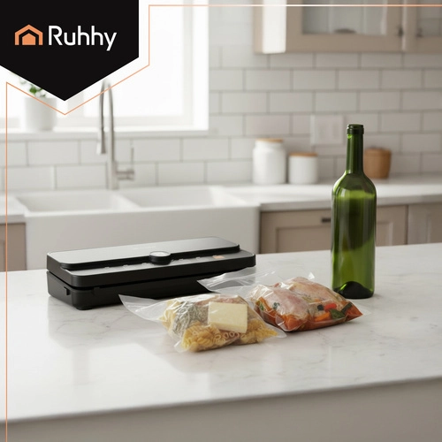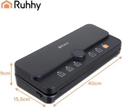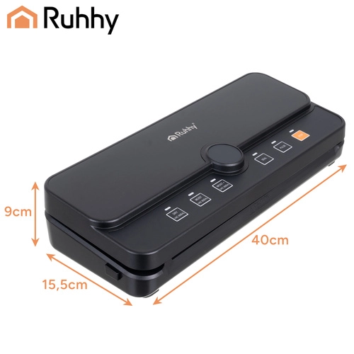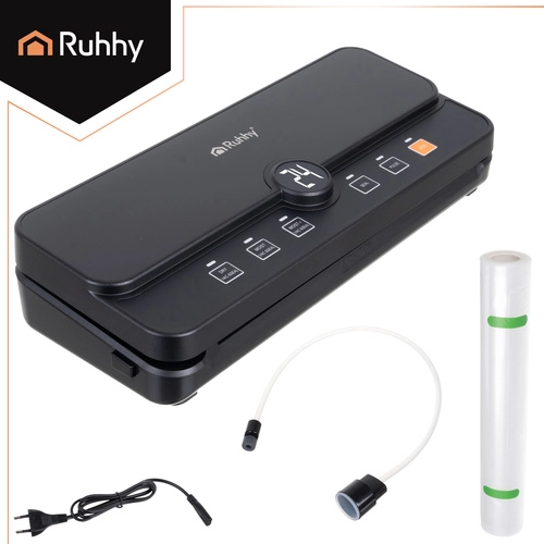 Praktiška ir patikima RUHHY vakuuminė plėvelės suvirinimo mašina idealiai tinka namų maisto laikymui ir sous‑vide ruošai. Dėl stipraus iki -80 kPa vakuumo ir galingo 9 l/min siurblio oras pašalinamas per kelias sekundes, o tvirtas, tolygus suvirinimas užtikrinamas kiekvieną kartą. Integruotas ritinio laikiklis ir slankusis pjoviklis leidžia gaminti bet kokio ilgio maišelius be žirklių – taupote laiką ir vietą.