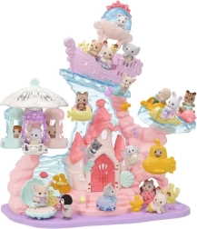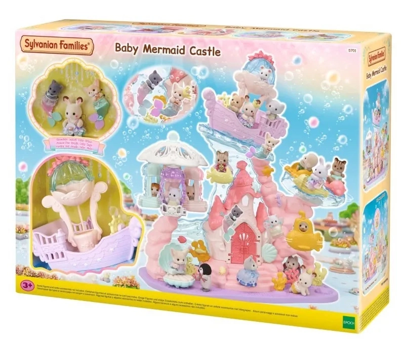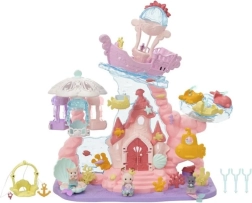 Atraskite užburiantį SYLVANIAN FAMILIES povandeninį rūmą, kuris pavers vaiko kambarį fantazijos karalyste. Rinkinyje yra keltuvas, važiuojantis aukštyn ir žemyn, karuselė su jūrų gyvūnais, pasivažinėjimas povandeniniu laivu ir ant geltonos žuvelės. Komplekte – trys aksominės vaikų figūrėlės su judančiais sąnariais, lobio skrynia, atidaromos durys ir kriauklės formos lova – idealu kūrybiniam žaidimui ir smulkiajai motorikai lavinti nuo 3 metų.