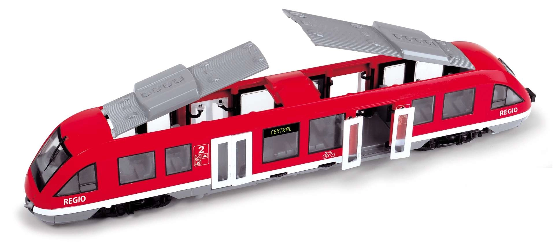 Raudonas miesto traukinys su atidaromomis durimis REGIO nuo Dickie Toys