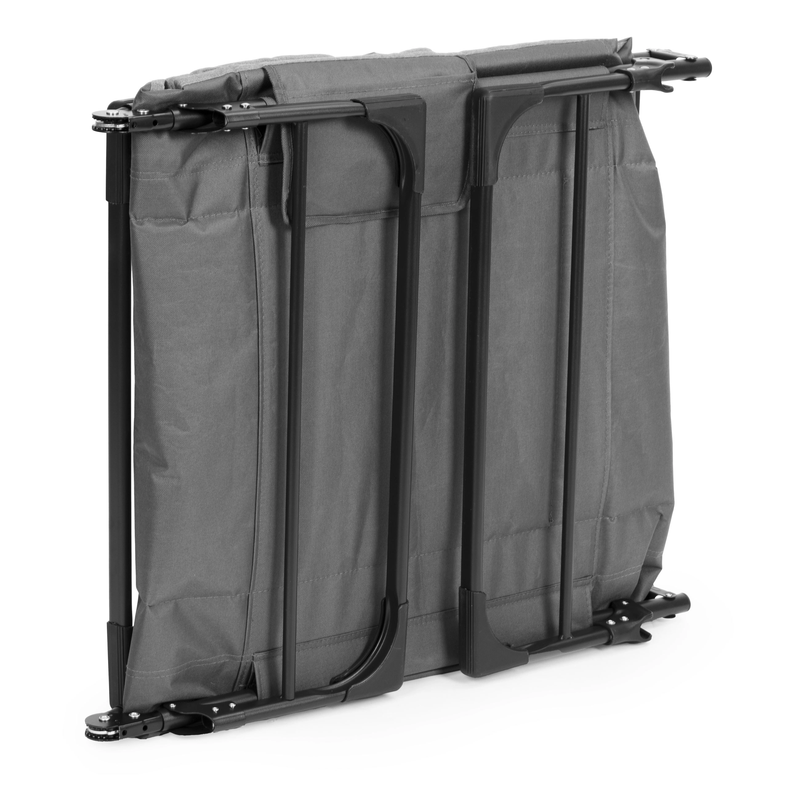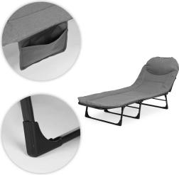 Praktiškas ir patogus gultas stovyklavimui, terasai ir sodui. Stabilus, milteliniu būdu dengtas plieninis rėmas ir patvarus Oxford 600D audinys užtikrina ilgaamžiškumą ir komfortą poilsio metu. Nugaros atlošas reguliuojamas 5 lygiais, todėl lengvai perjungsite iš visiškos gulimos padėties į poilsinę.