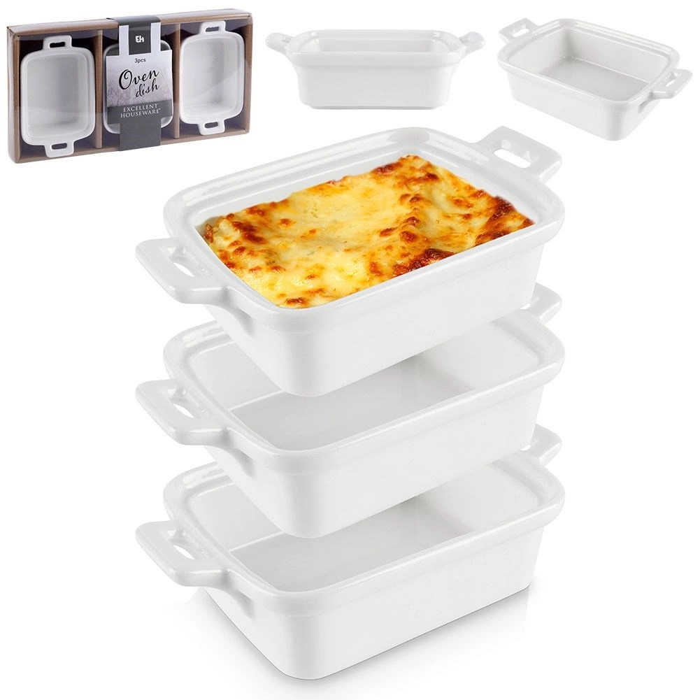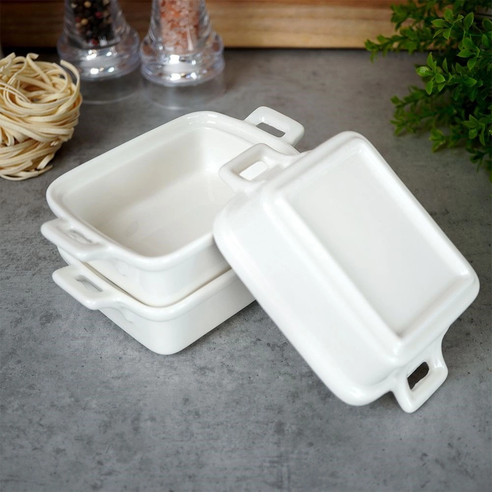 Šios kompaktiškos stačiakampės kepimo formelės su integruotomis rankenėlėmis puikiai tinka crème brûlée, suflė, mažoms apkepų porcijoms, gratinams ar mini lazanijoms. Aukštos kokybės porcelianas tolygiai paskirsto šilumą ir ilgiau išlaiko patiekalus šiltus, tad galite juos iš karto patiekti iš orkaitės ant stalo.