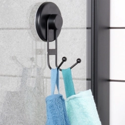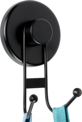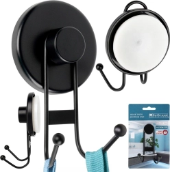 Praktiškas dvigubas kabliukas su siurbtuku, elegantiškos matinės juodos spalvos, tinka vonios kambariui ir virtuvei. Siūlo tvirtą tvirtinimą be gręžimo, lengvą montavimą ant lygių paviršių (plytelės, stiklas) ir patvarų metalinį apdirbimą, užtikrinantį ilgą tarnavimo laiką. Idealu rankšluosčiams, chalatais ir virtuviniams aksesuarams.