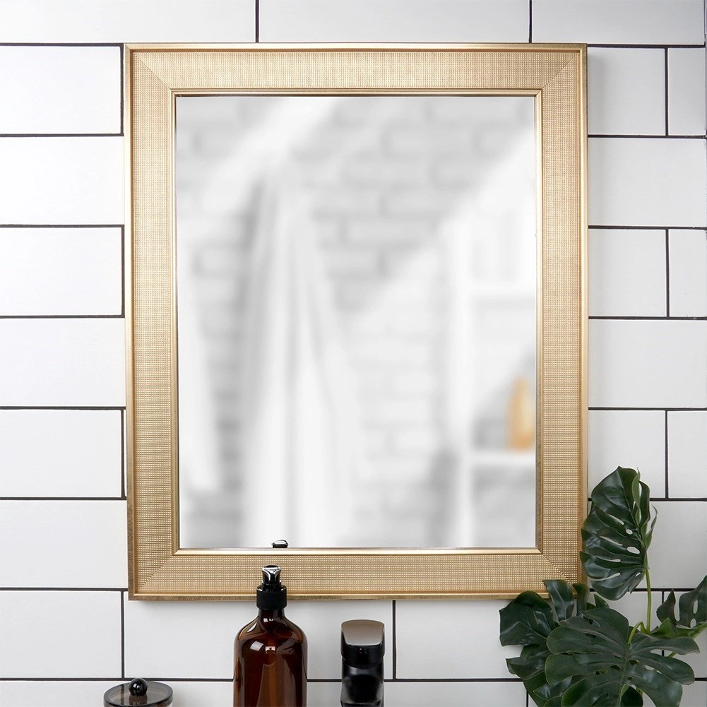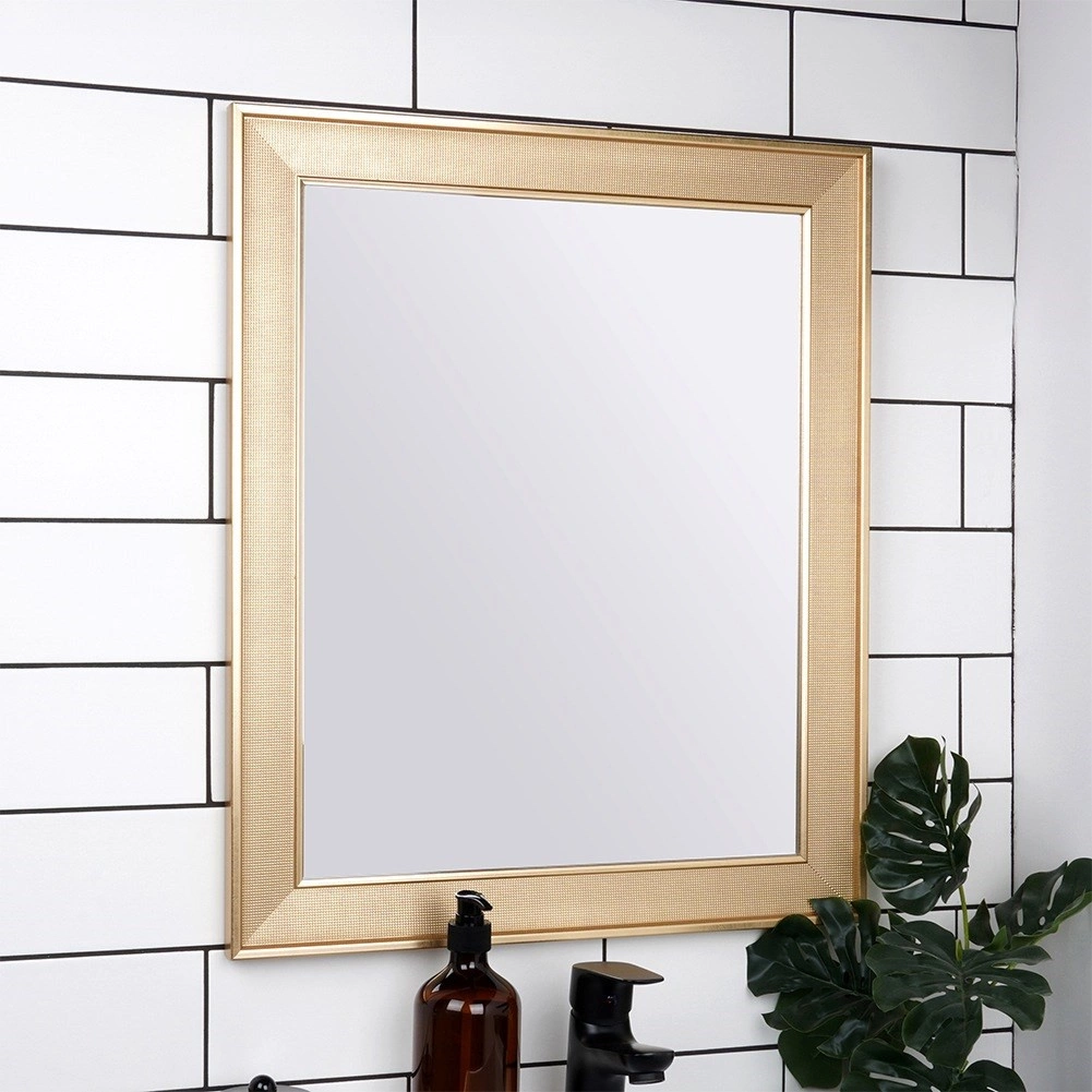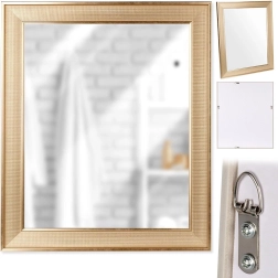 Elegantiškas sieninis veidrodis su auksiniu rėmu ir populiaria stačiakampio forma, matmenys 49,5 × 59,5 cm. Suteikia švarų ir ryškų atspindį, galima kabinti vertikaliai arba horizontaliai, puikiai tinka klasikiniams ir moderniems interjerams.