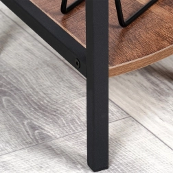 Juodas metalinis rėmas kartu su MDF lentynomis užtikrina tvirtumą, ilgaamžiškumą ir lengvą paviršiaus priežiūrą.