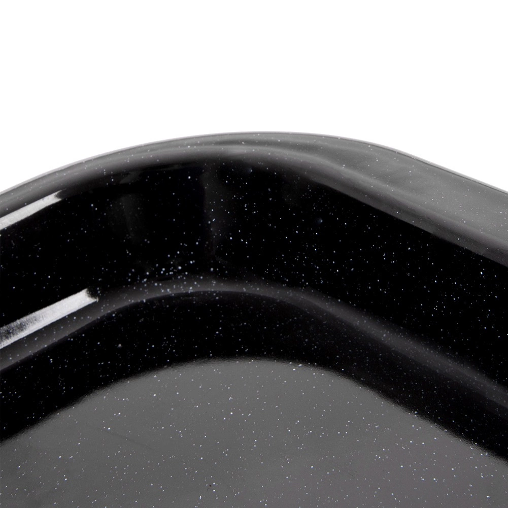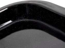 Ši universali emaliuota kepimo skarda – būtinas pagalbininkas kiekvienuose namuose. Patvarus plienas su kokybiška emaliuota danga atlaiko aukštą temperatūrą, yra atsparus įbrėžimams ir leidžia lengvai palaikyti švarą. Išoriniai matmenys 40 × 35,5 × 2 cm, o vidiniai 37 × 29,5 × 1,5 cm suteikia pakankamai vietos saldiems ir sūriems gardėsiams kepti.
