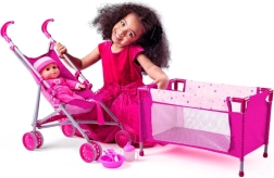 Ši graži rinkinio sudėtis apima viską, ko jūsų vaikui reikia rūpintis mėgstama lėlyte. Į komplektą įeina sportinis vežimėlis su metaline konstrukcija, kuris yra itin praktiškas dėl lengvo valdymo. Taip pat pridedama kelioninė lovytė, idealiai tinkanti žaidimams namuose ir lauke.