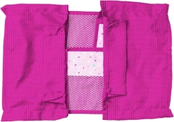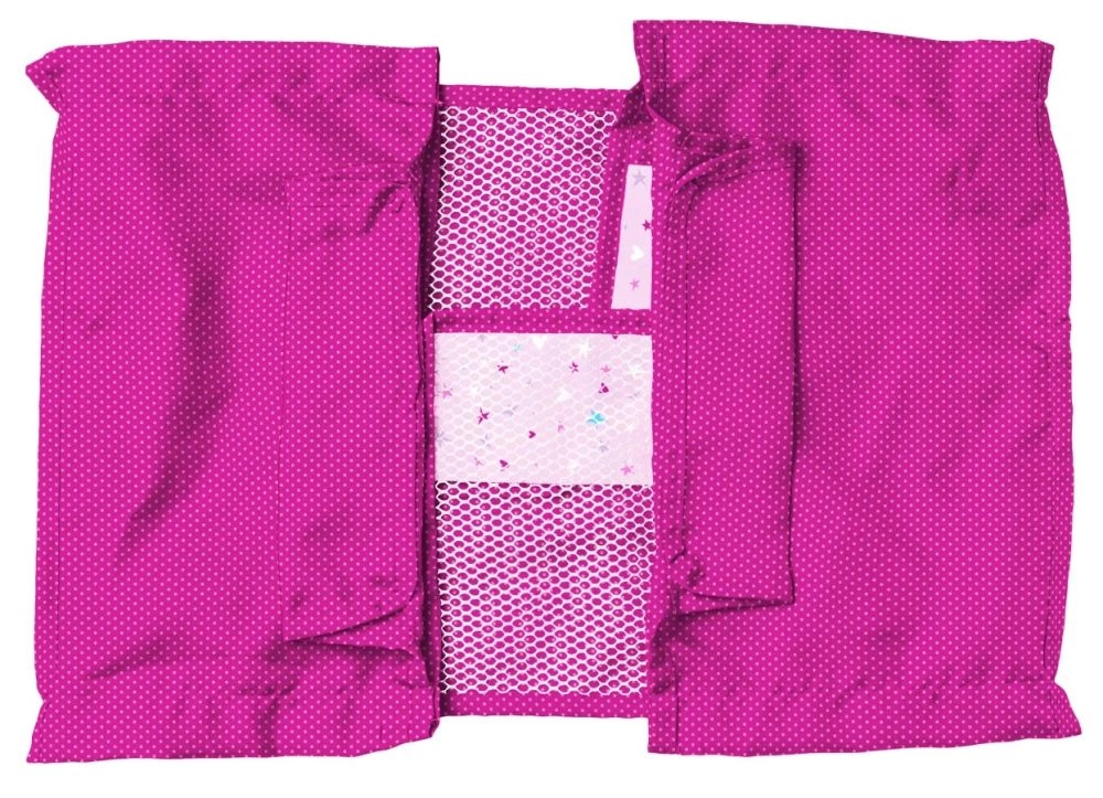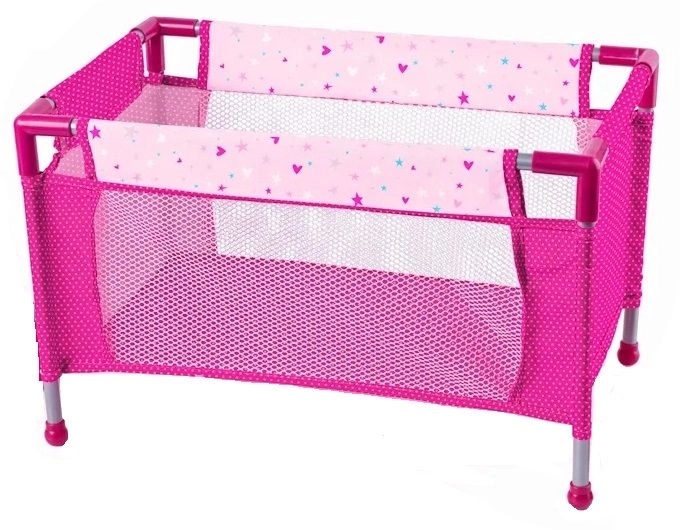Rožinė lovytė su metaliniu rėmu idealiai tinka žaisti namuose ir lauke. Ji yra nešiojama ir lengva.