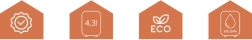 - 4,3 l, užpildymo indikatorius, automatinis išsijungimas pasiekus Full