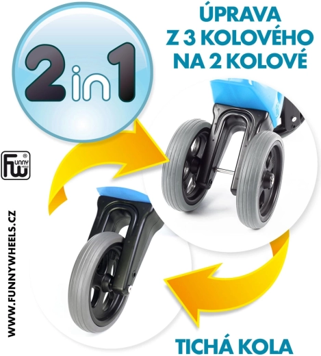Lengvutis balansinis dviratukas FUNNY WHEELS Rider Sport 2v1 auga kartu su vaiku: akimirksniu jį pakeisite iš triratuko į dviračio tipo balansinį dviratuką ir sureguliuosite dvi sėdynės aukščio padėtis. Tylūs, neslystantys ratai, saugios vairo galinės užtvaros ir patvarus, sveikatai saugus plastikas užtikrina komfortą ir saugumą jau nuo 18 mėn. Pagaminta Čekijoje.