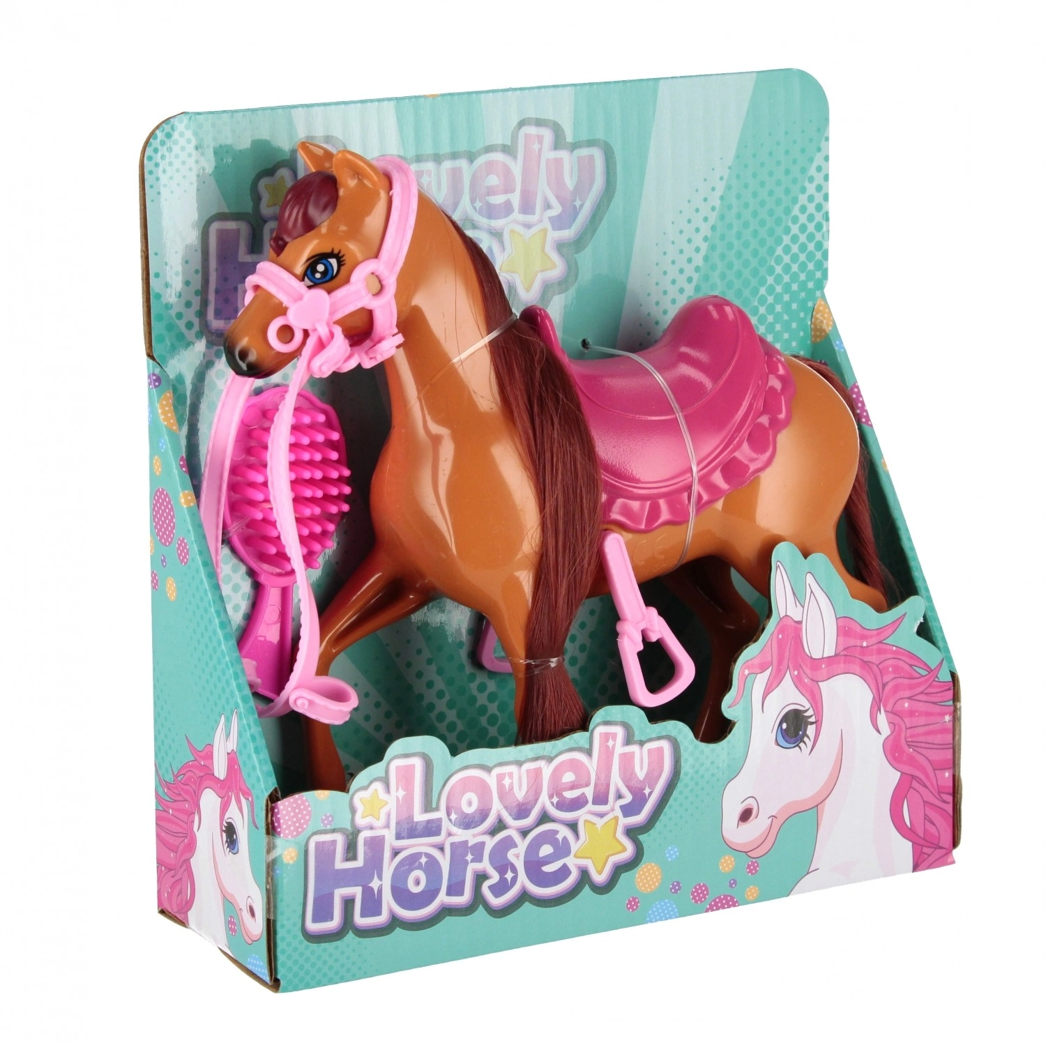 Mielas žirgas su priedais pradžiugins kiekvieną vaiką, kuris myli gyvūnus. Jis turi ilgą karčius ir uodegą šukavimui, kokybišką balną su detaliu apdirbimu, o rinkinyje taip pat yra kortelė karčiams tvarkyti. Puikiai tinka žaidimams ūkyje ir arklidėse. Tinka nuo 3 metų. Kaina už 1 vnt.