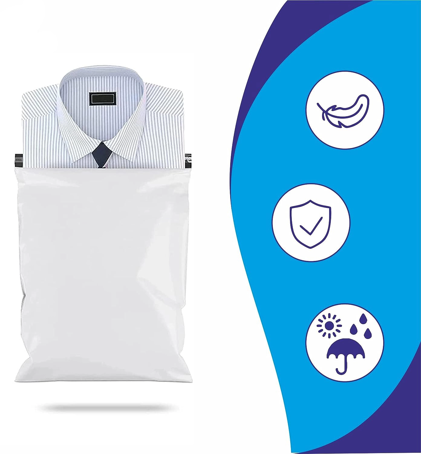 Šios baltos polietileninės siuntinių pakuotės sukurtos greitam ir saugiam pakavimui. Dėl „peel-and-seal“ lipnios juostelės voką lengvai užklijuosite be papildomos lipnios juostos ir gausite sandariai užklijuotą bei nuo įsibrovimo apsaugotą pakuotę (bet koks atplėšimas bus aiškiai matomas). Lengva konstrukcija mažina siuntimo kaštus, kartu saugo turinį nuo drėgmės ir nešvarumų.