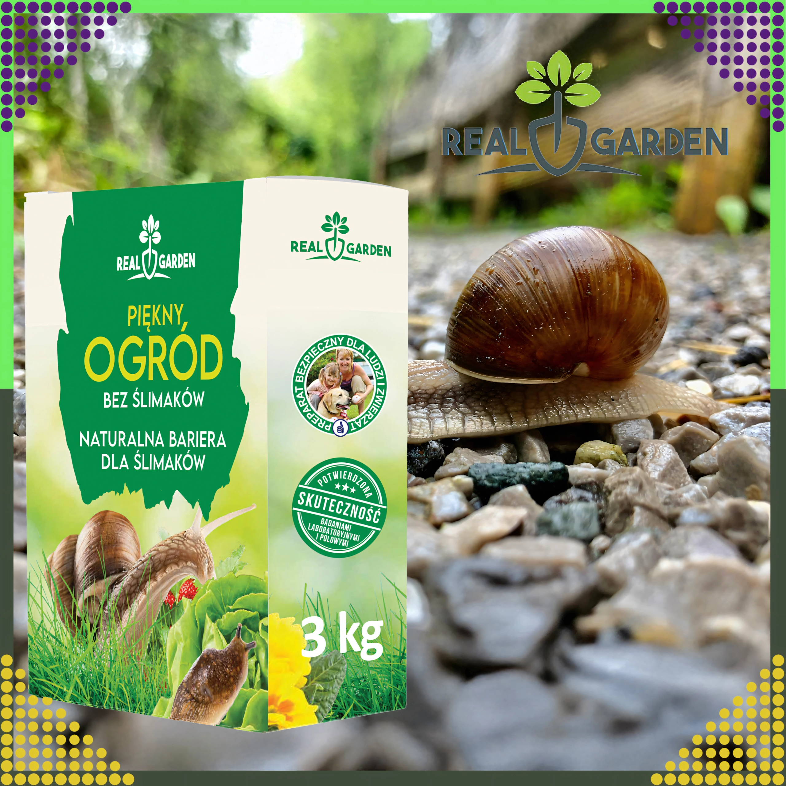 Ieškote patikimos ir švelnios apsaugos nuo sraigių? Šis natūralus sraigių atbaidiklis 3 kg veiksmingai apsaugo augalus nuo pažeidimų ir kartu palaiko sveiką dirvožemį. Užpylus sukuria apsauginį barjerą, kurio sraigės neįveikia, neapkraudamas aplinkinio ekosistemos.