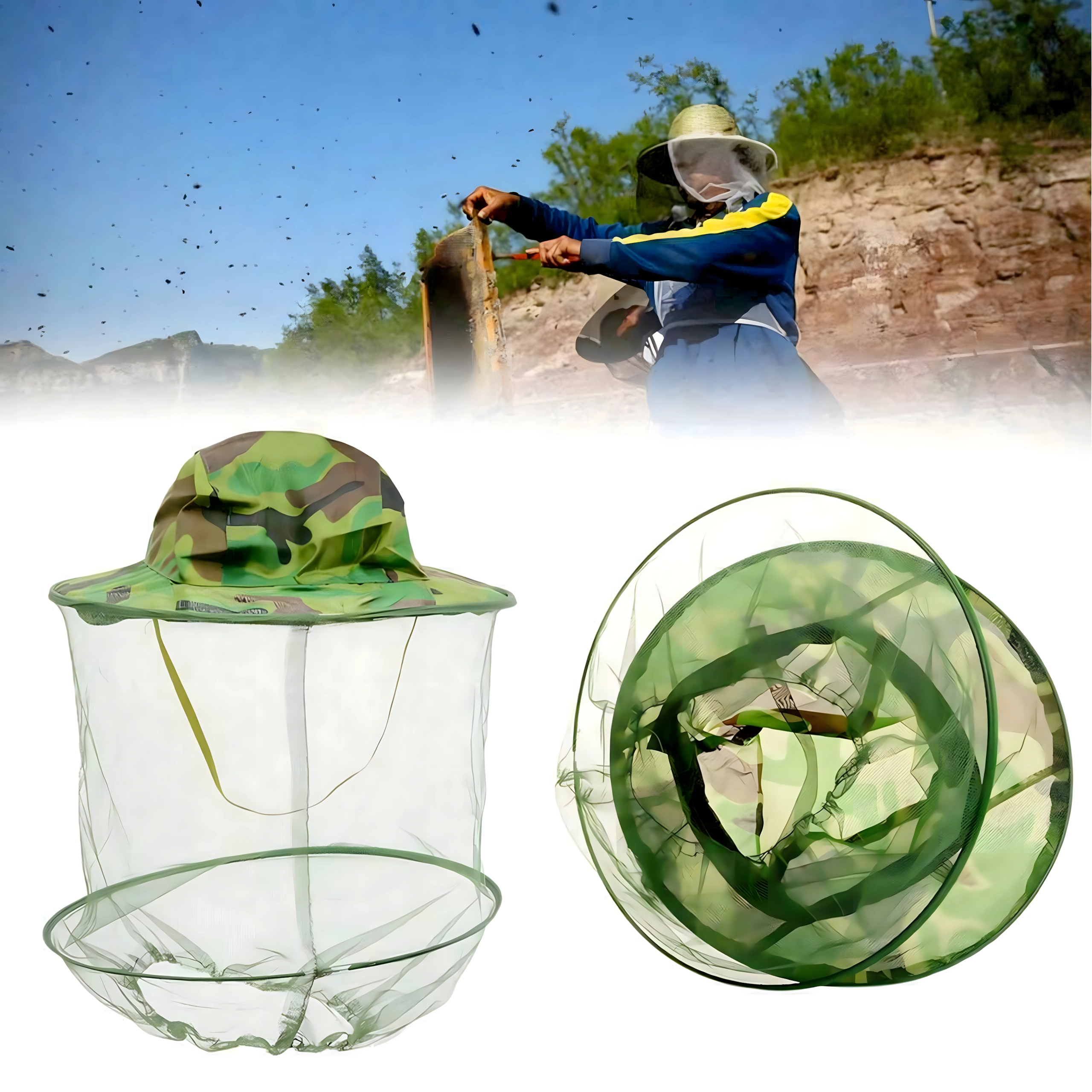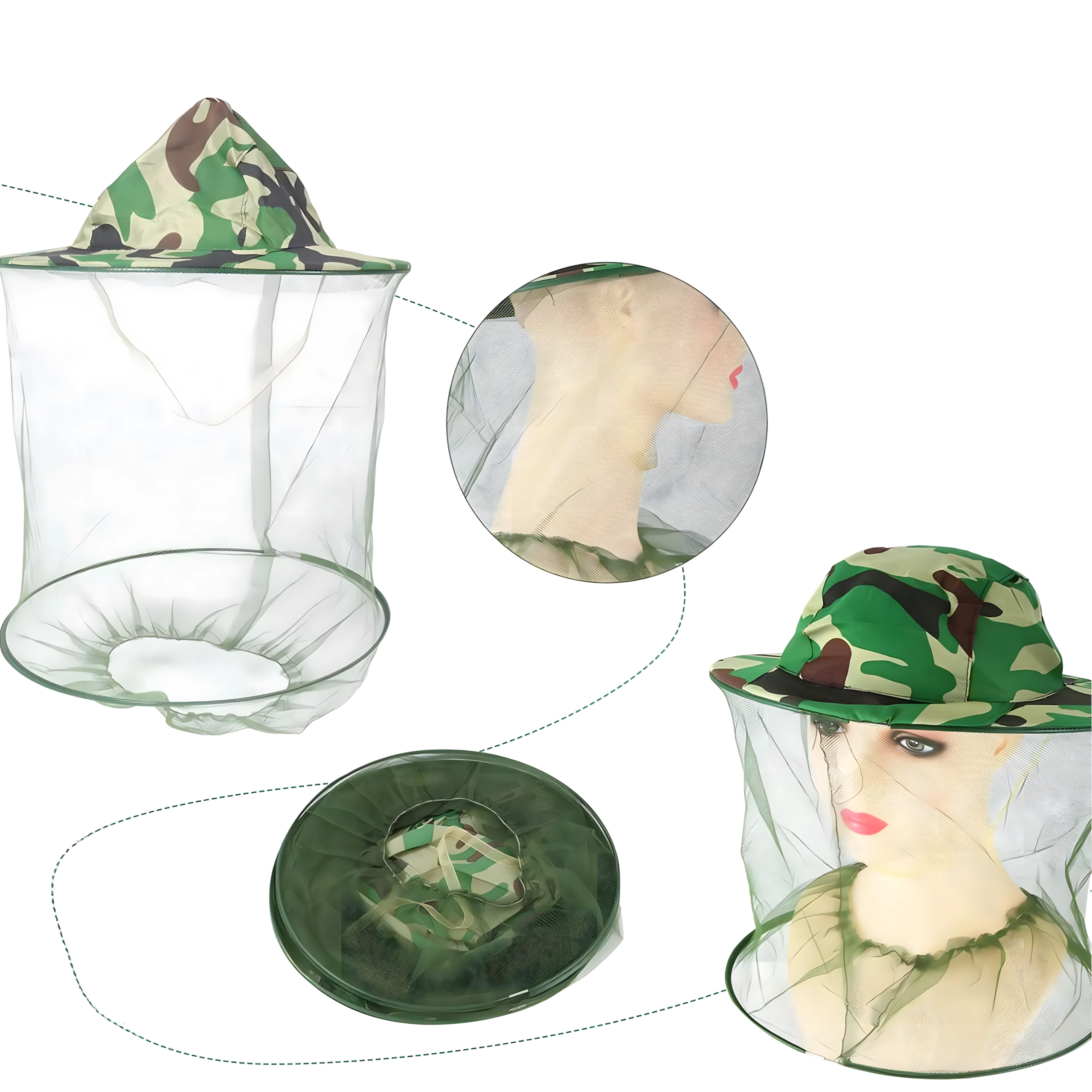 Lengva ir kvėpuojanti maskuojamo rašto kepurė su tinkleliu suteikia patikimą apsaugą nuo uodų, bičių ir kito vabzdžių. Platus snapelis laiko tinklelį atokiau nuo veido, o elastingas kraštelis po kaklu užtikrina sandarų prigludimą. Ideali žvejybai, miškui, sodui ir žygiams.