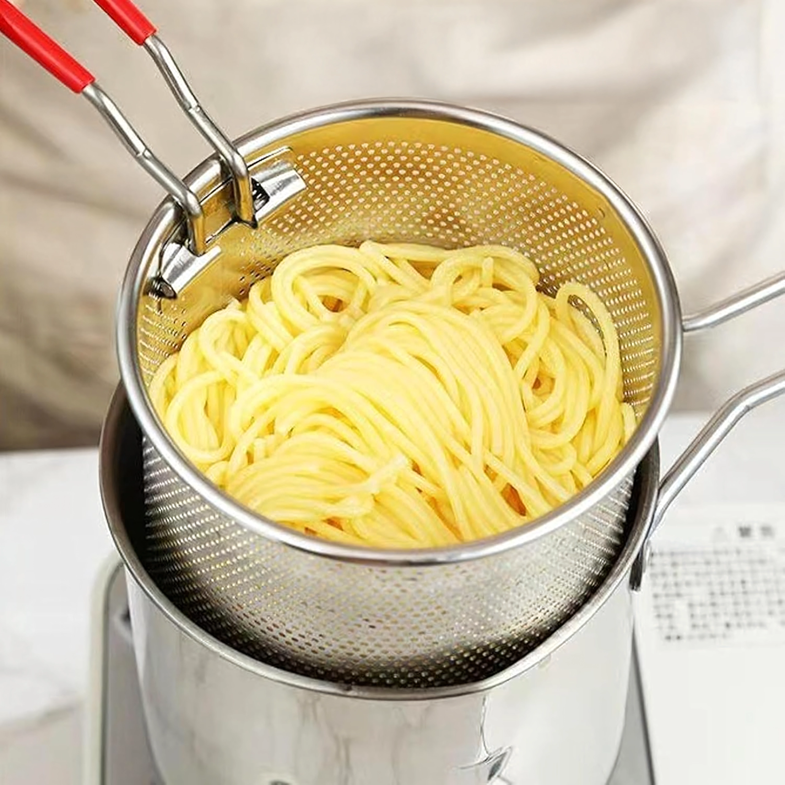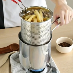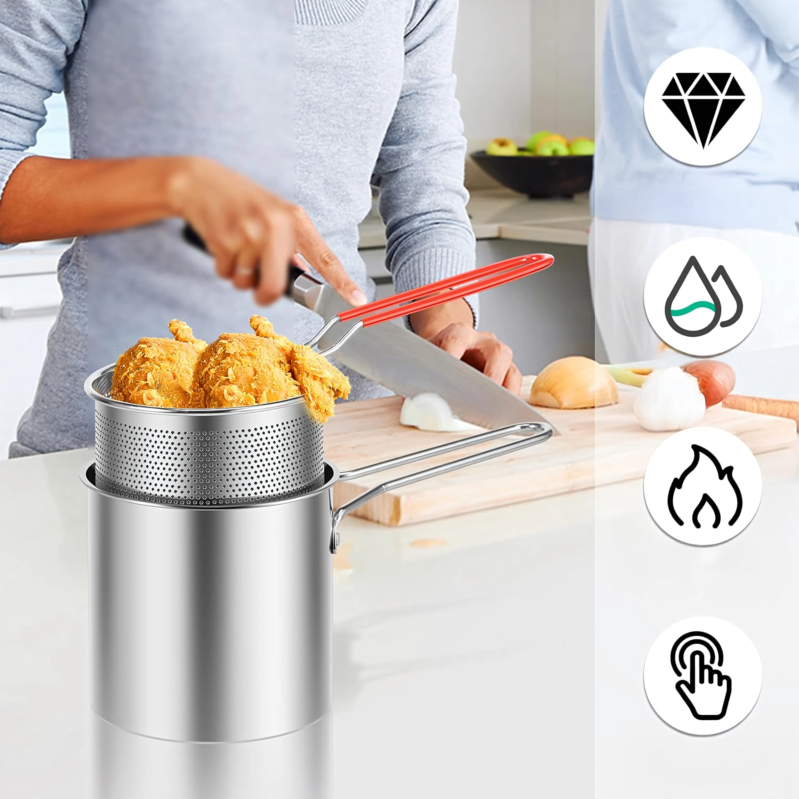 Kompaktiškas puodas su aukštos kokybės 304 nerūdijančio plieno krepšeliu idealiai tinka tiek gyliajam kepimui, tiek virimui ir nusunkimui makaronų ar daržovių. Išimamas krepšelis veiksmingai filtruoja aliejų, nuimama rankena taupo vietą, o nerūdijančio plieno konstrukcija yra patvari, lengvai valoma ir padeda taupyti aliejų namuose ir kelionėse.