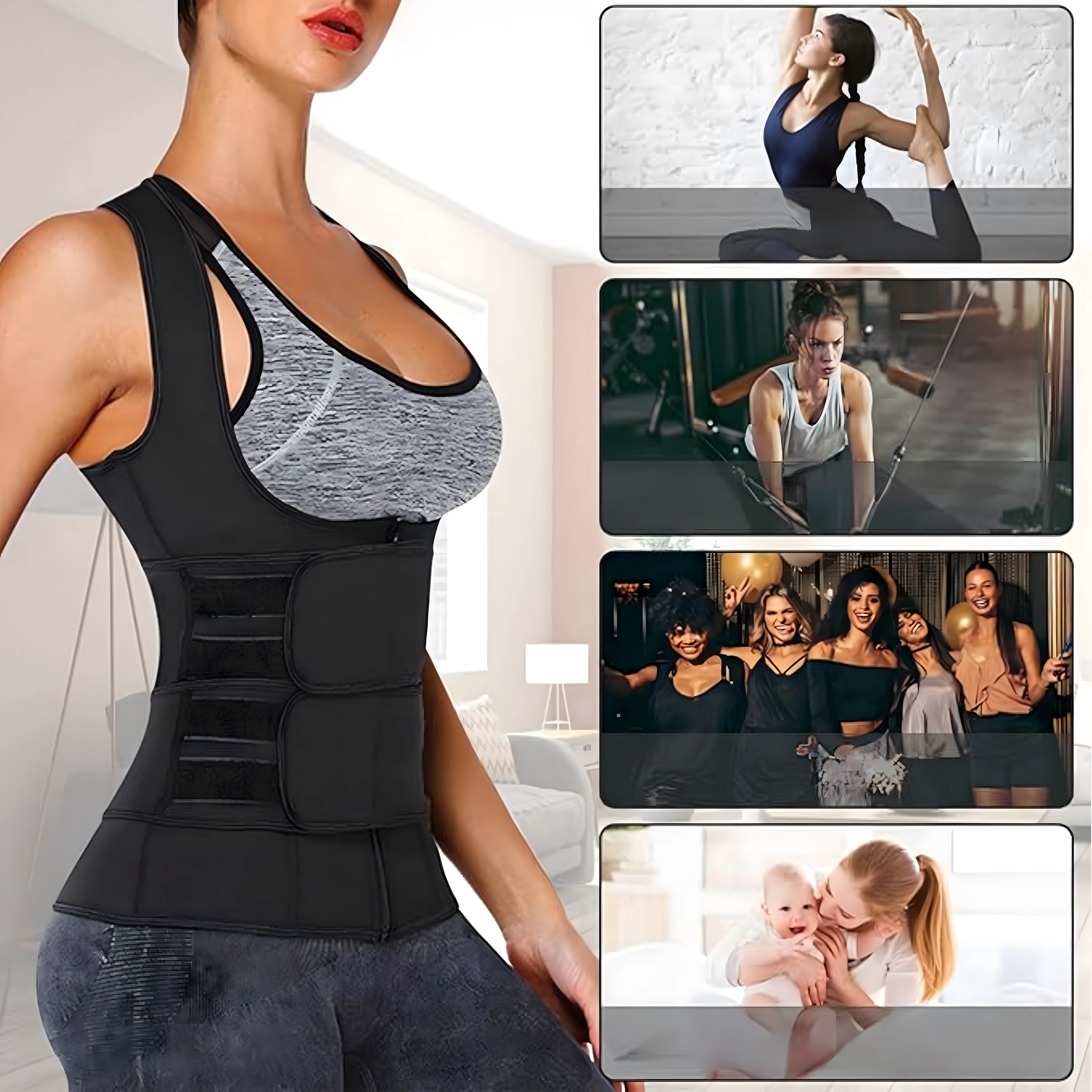 Ši moteriška neopreninė liemenė derina formuojantį efektą su funkcine atrama kasdienėms treniruotėms. Dėl padidėjusios šiluminės veiklos sukuriamas saunos efektas, kuris skatina intensyvesnį prakaitavimą ir gali padėti greičiau sumažinti juosmens apimtį. Priekinis užtrauktukas ir dvigubi lipnūs suspaudimo diržai leidžia tiksliai ir patogiai suveržti pagal jūsų poreikius.