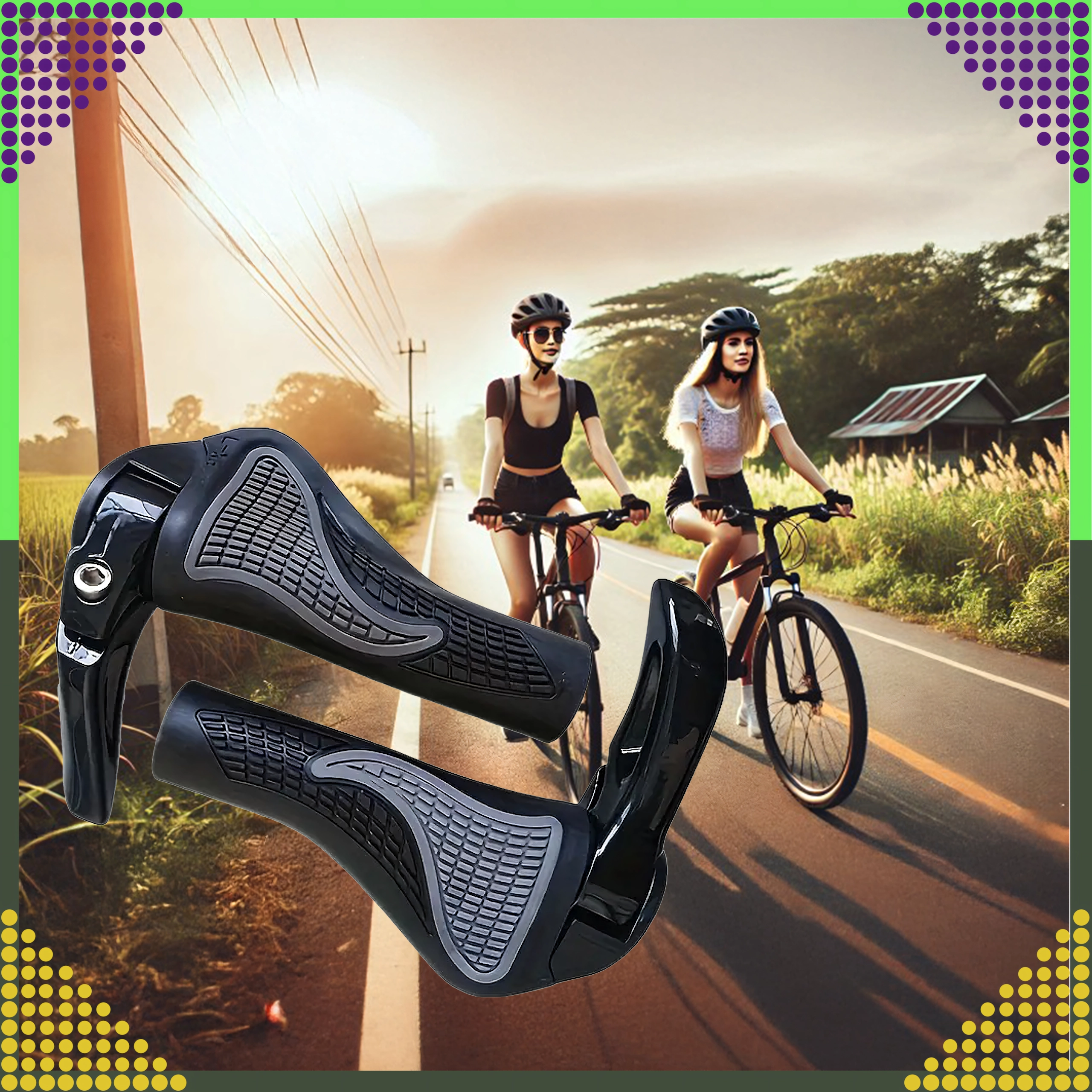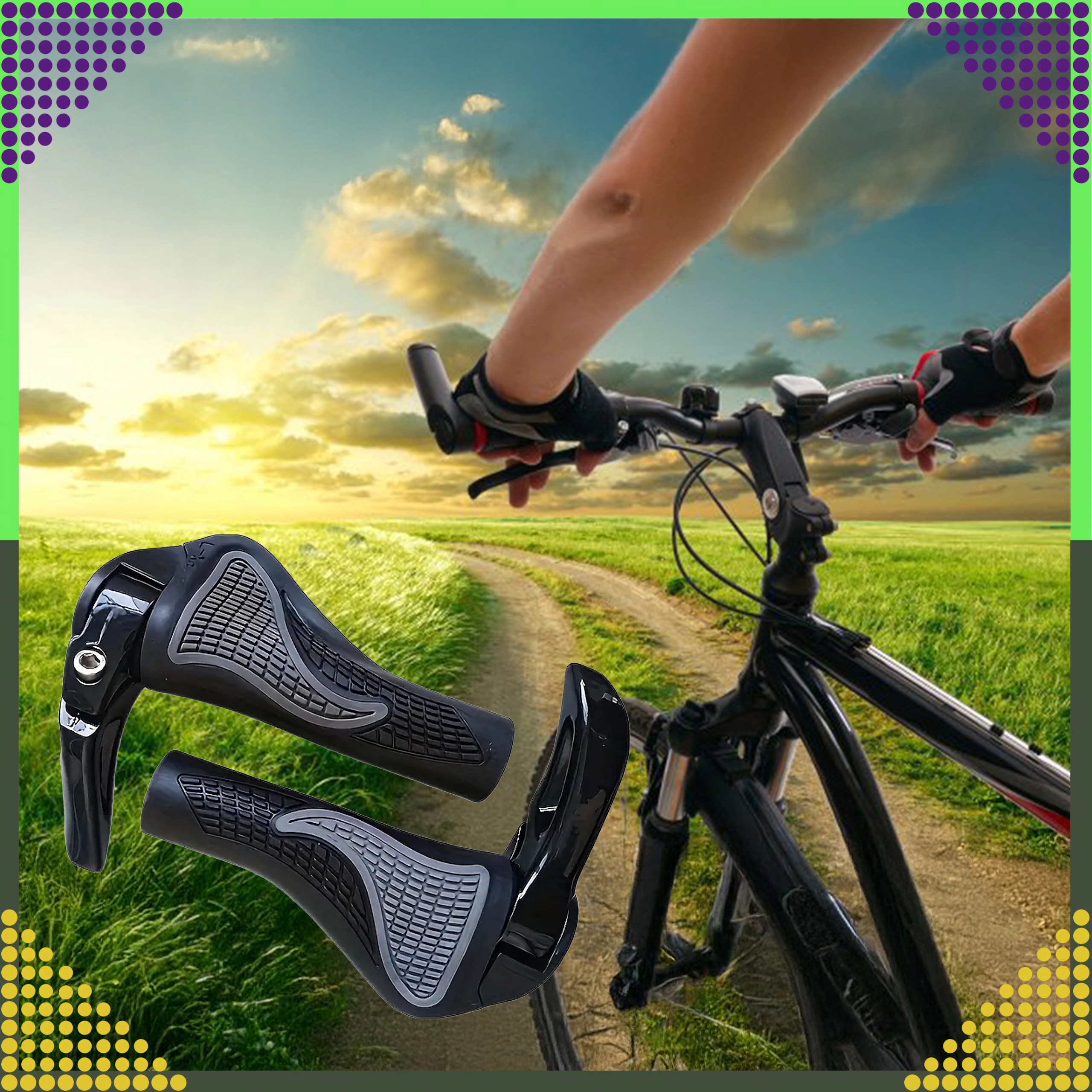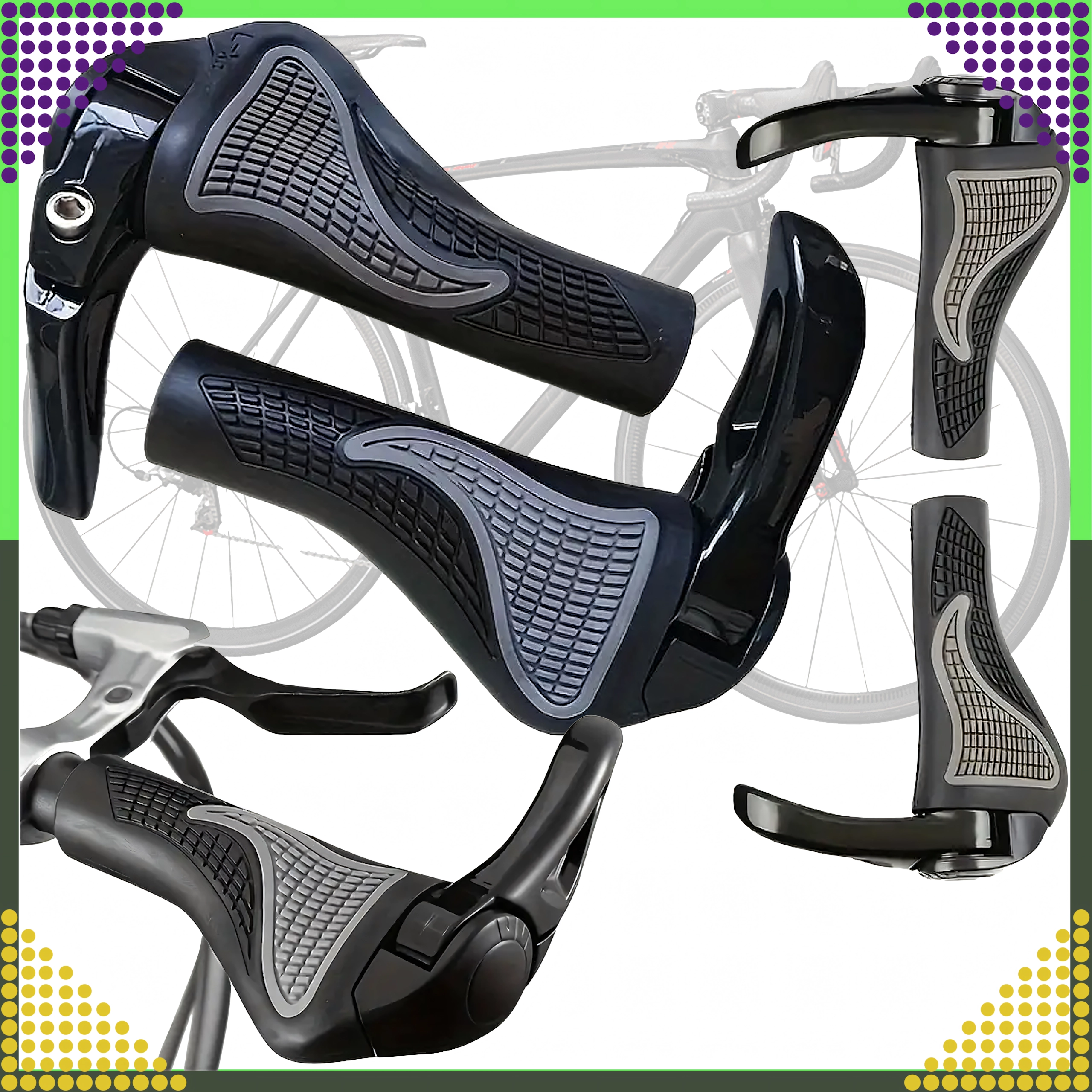 Patogūs ir patvarūs dviračio gripai su integruotais rageliais geresnei rankų atramai. Dėl ergonomiškos formos ir neslystančios medžiagos užtikrina tvirtą suėmimą, stabilumą ir patogumą net ilguose maršrutuose.