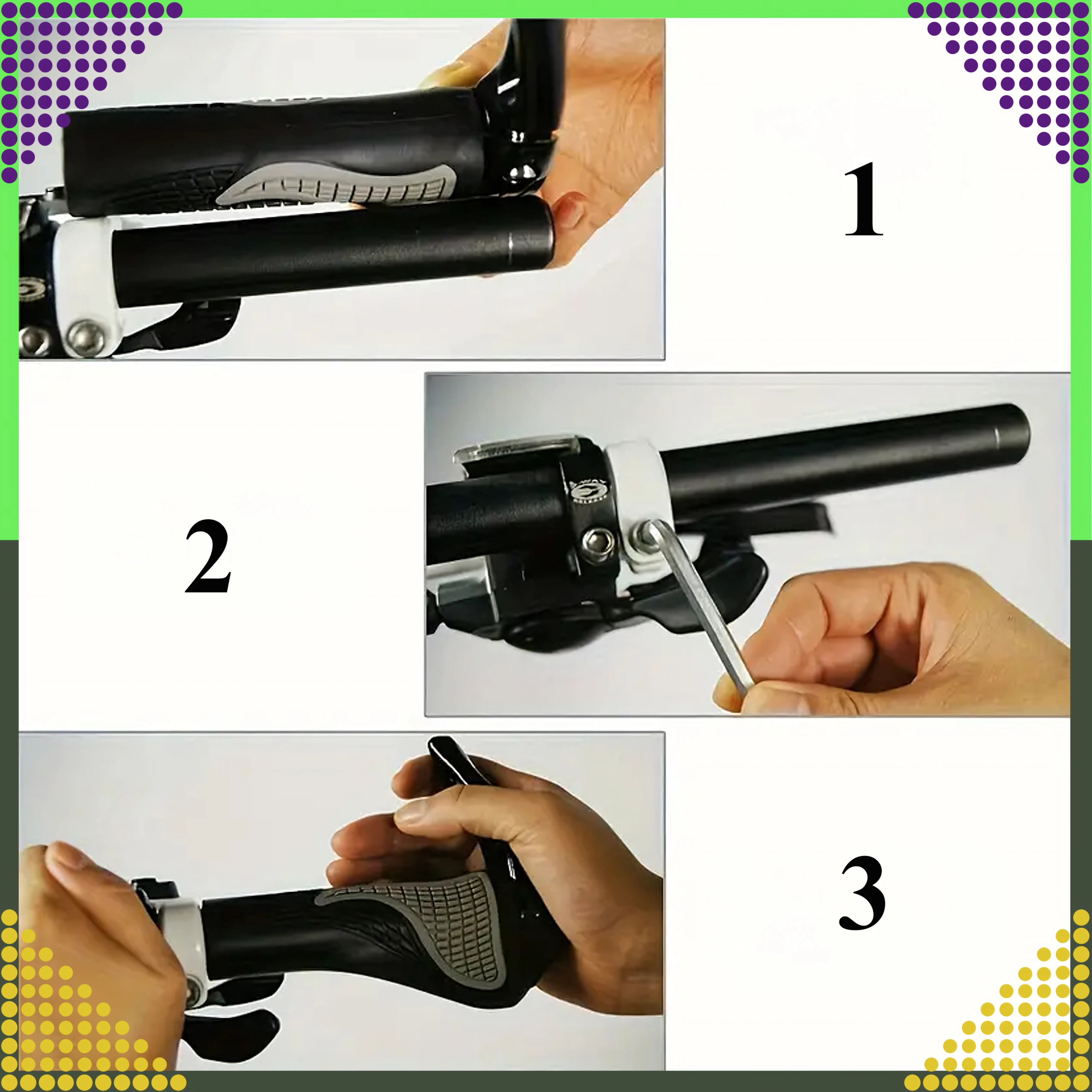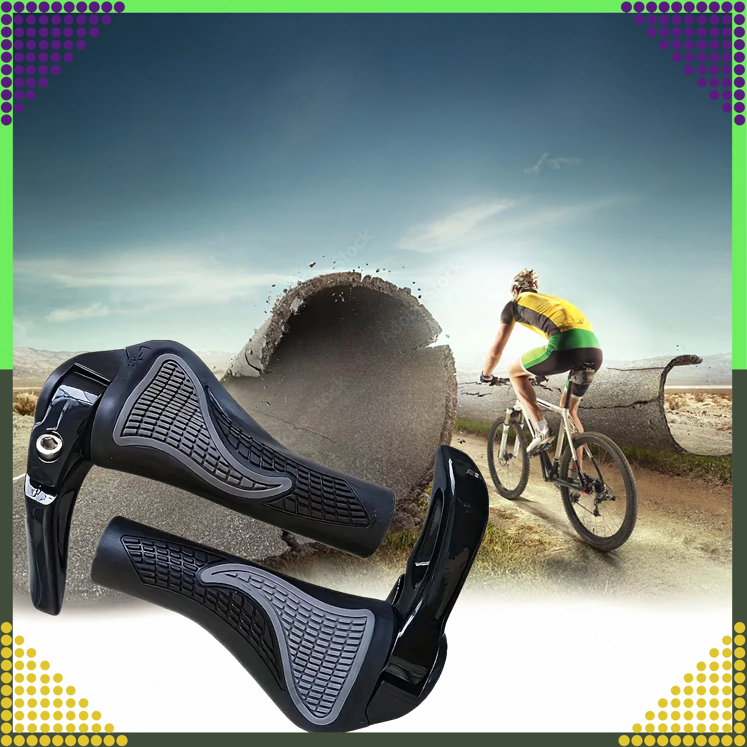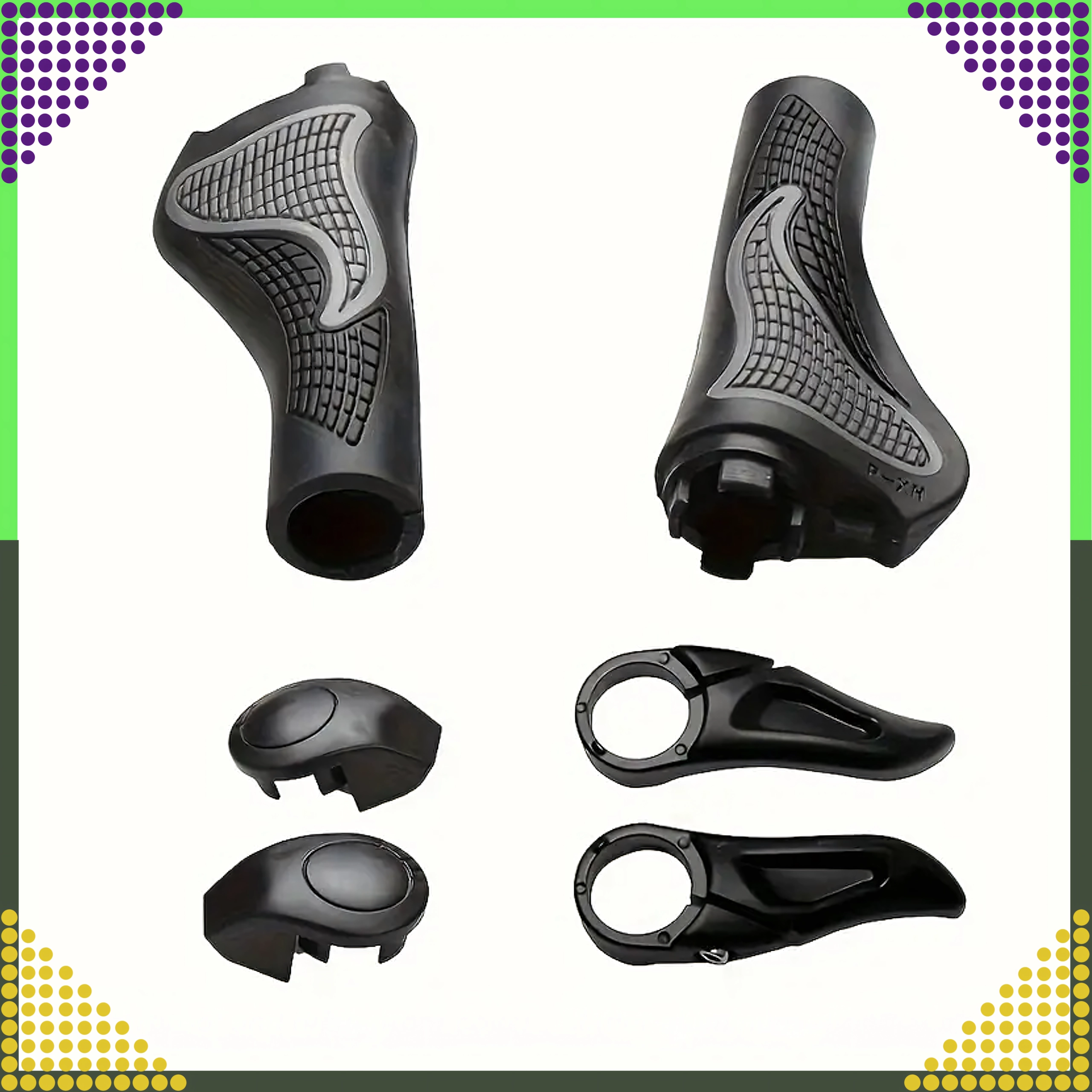 Patogūs ir patvarūs dviračio gripai su integruotais rageliais geresnei rankų atramai. Dėl ergonomiškos formos ir neslystančios medžiagos užtikrina tvirtą suėmimą, stabilumą ir patogumą net ilguose maršrutuose.