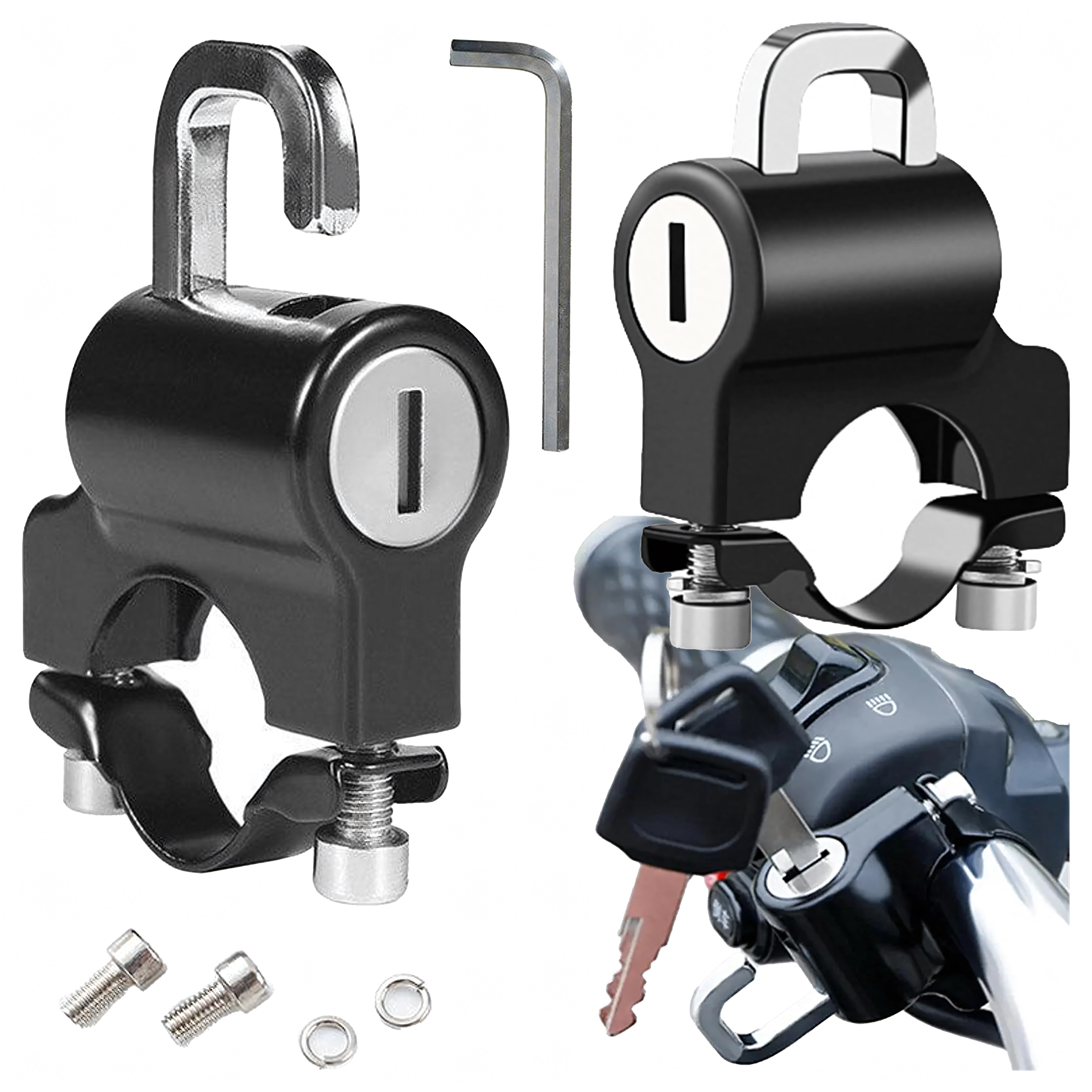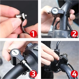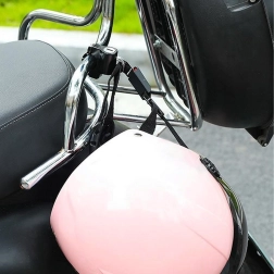 Kompaktiška šalmo spyna, skirta 20–24 mm skersmens vairams, patikimai apsaugos jūsų įrangą. Dėl patvaraus aliuminio korpuso, raktinės spynos ir paprasto montavimo ant vairo ji apsaugo šalmą ir priedus nuo vagystės ir tinka motociklams, motoroleriams ir elektriniams dviračiams.