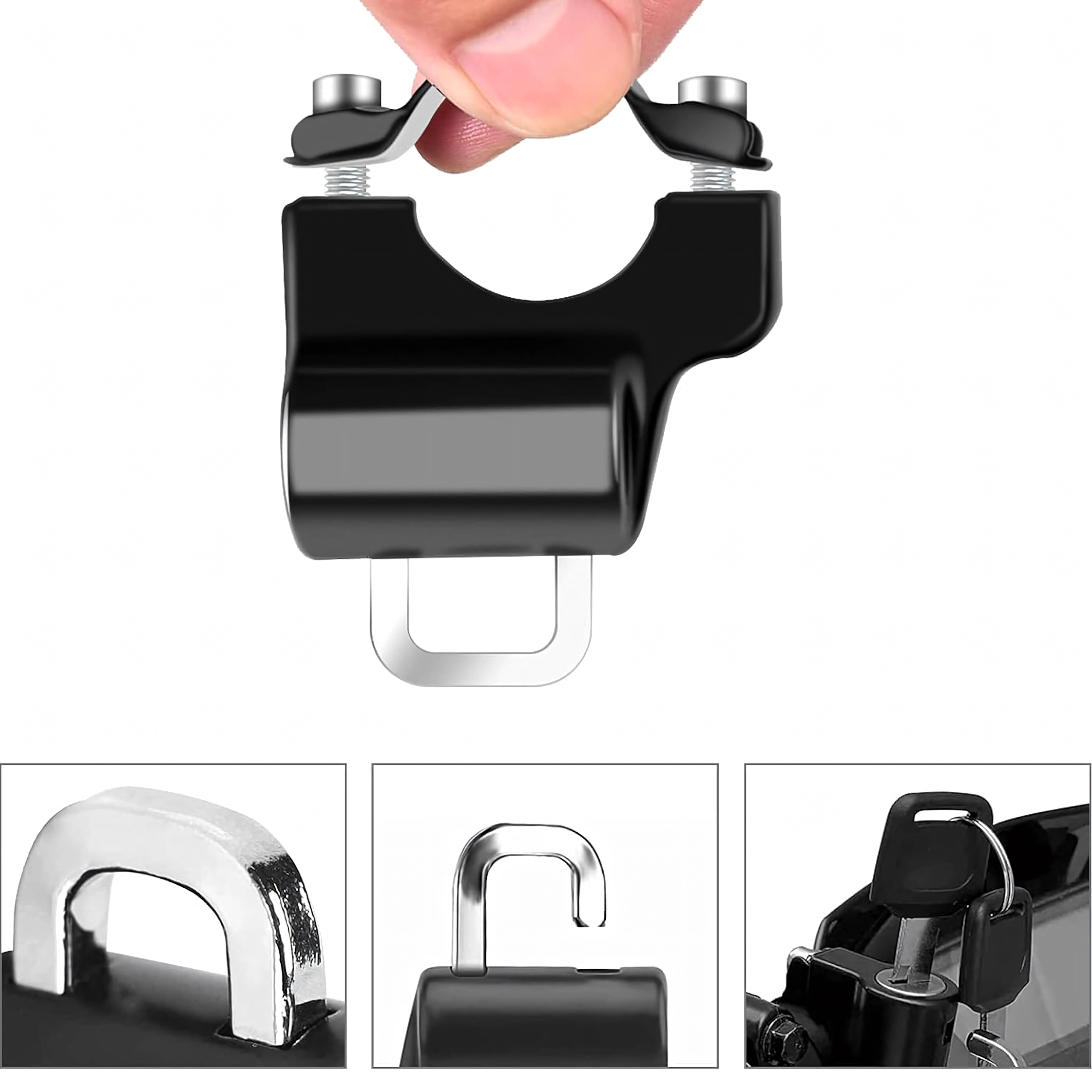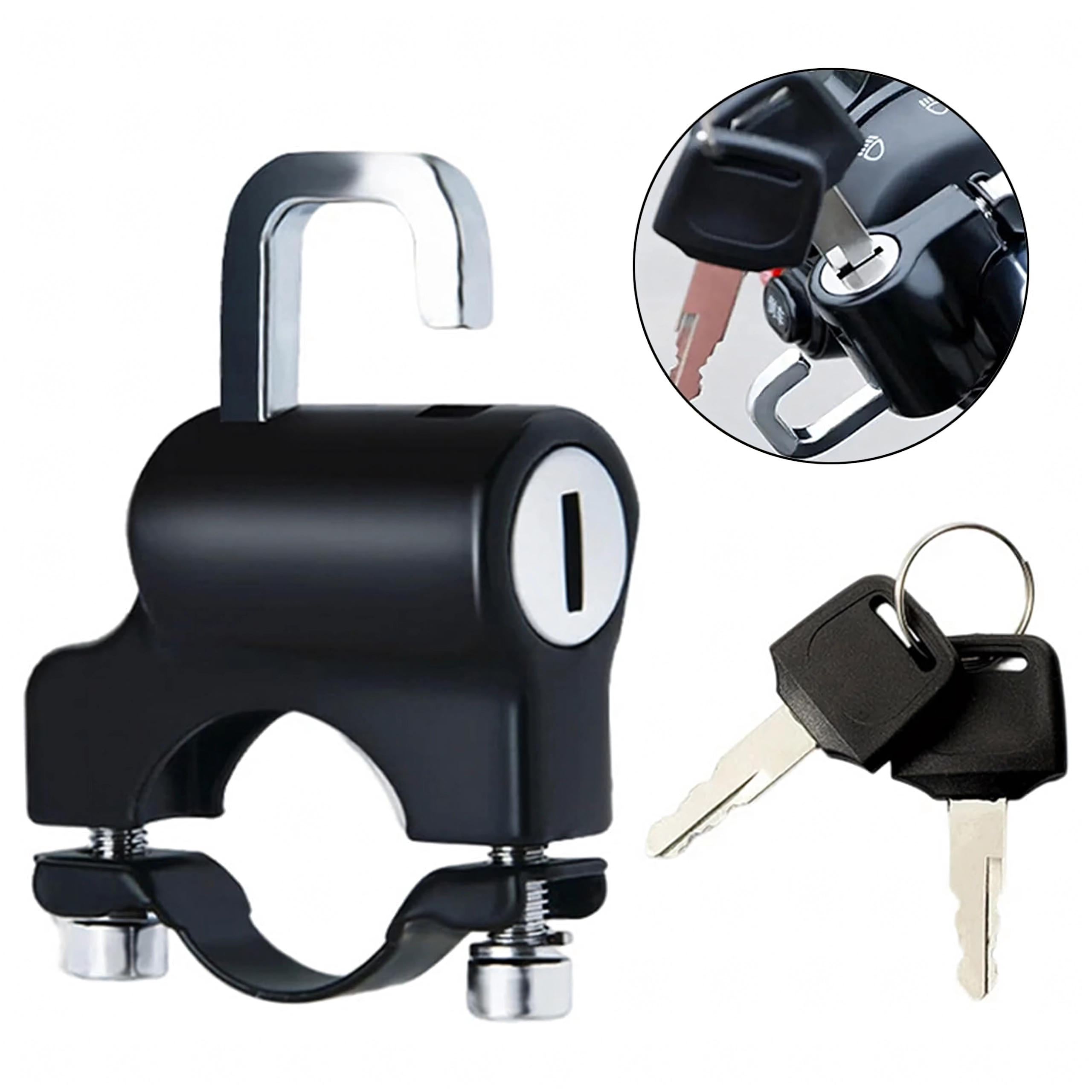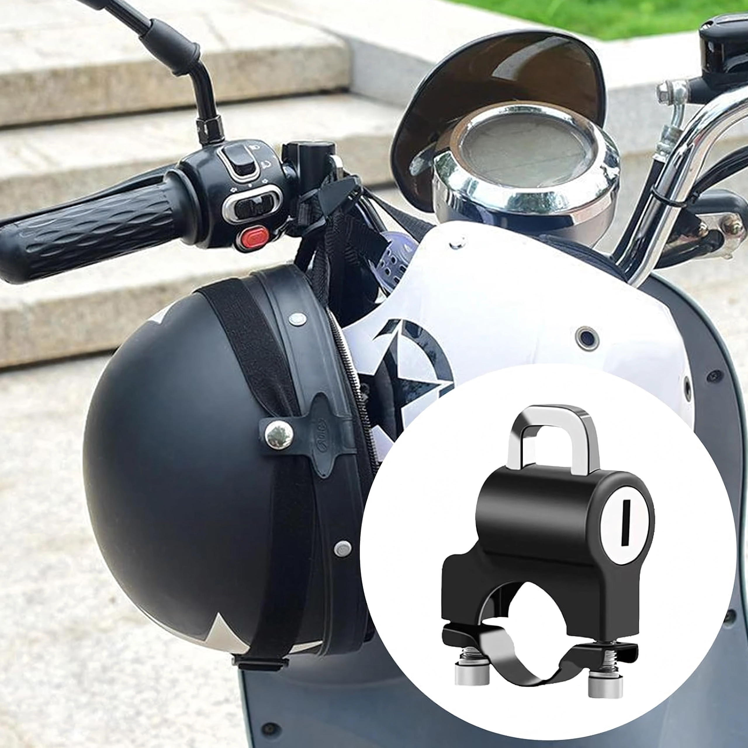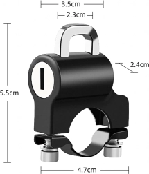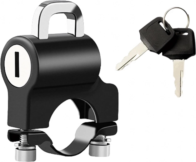 Praktiškas ir saugus sprendimas, leidžiantis palikti šalmą prie transporto priemonės be rūpesčių. Spyna su apkaba tvirtinama tiesiai ant vairo ir raktu užrakinama už šalmo kilpos ar dirželio. Kompaktiški matmenys netrukdo valdymui, o tvirta metalinė konstrukcija atspari orų poveikiui ir kasdieniam naudojimui.
