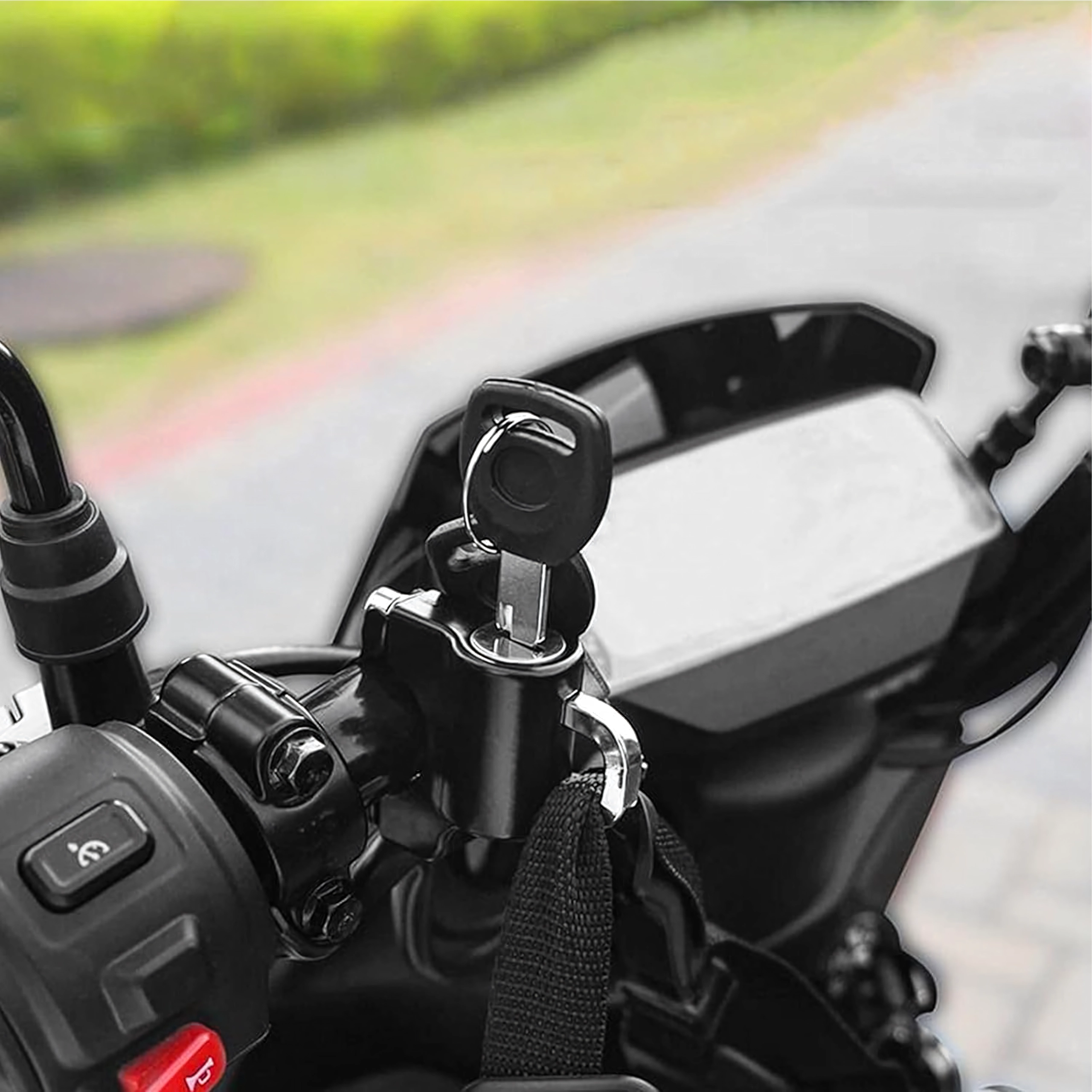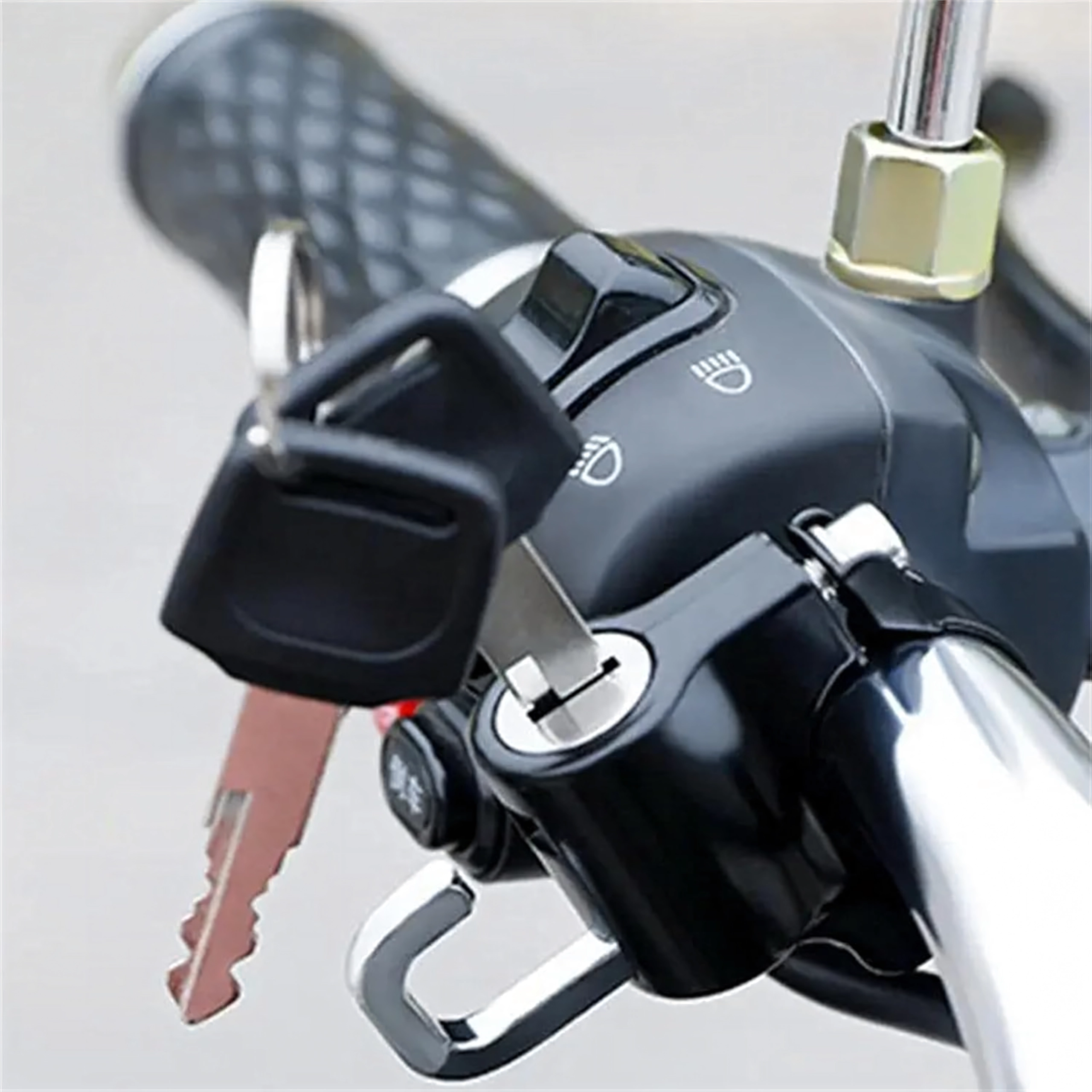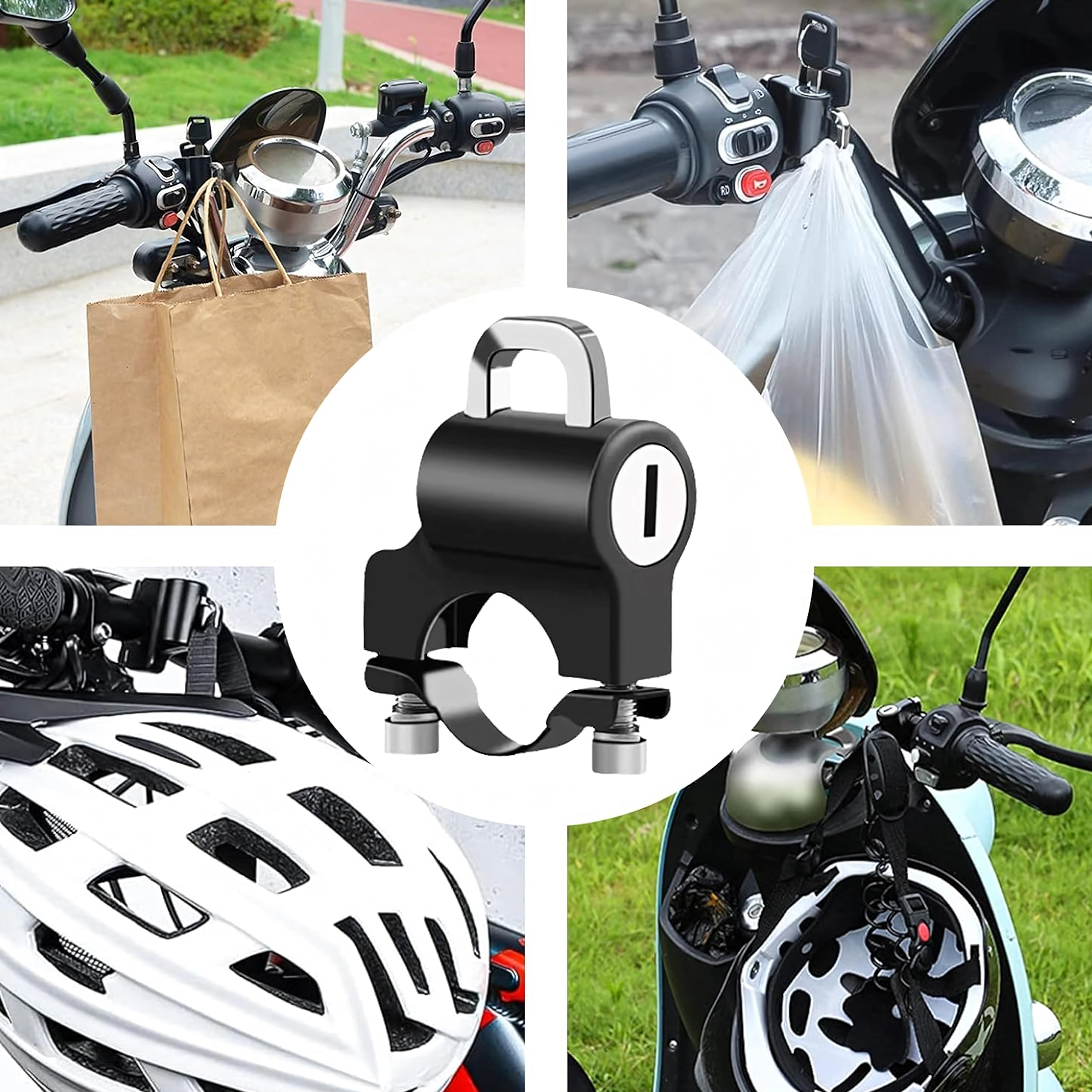 Praktiškas ir saugus sprendimas, leidžiantis palikti šalmą prie transporto priemonės be rūpesčių. Spyna su apkaba tvirtinama tiesiai ant vairo ir raktu užrakinama už šalmo kilpos ar dirželio. Kompaktiški matmenys netrukdo valdymui, o tvirta metalinė konstrukcija atspari orų poveikiui ir kasdieniam naudojimui.