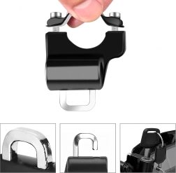 Raktinis mechanizmas su U formos plastiku dengtu lankeliu tvirtai užrakina šalmo kilpą arba dirželį ir neleidžia greitai pavogti.