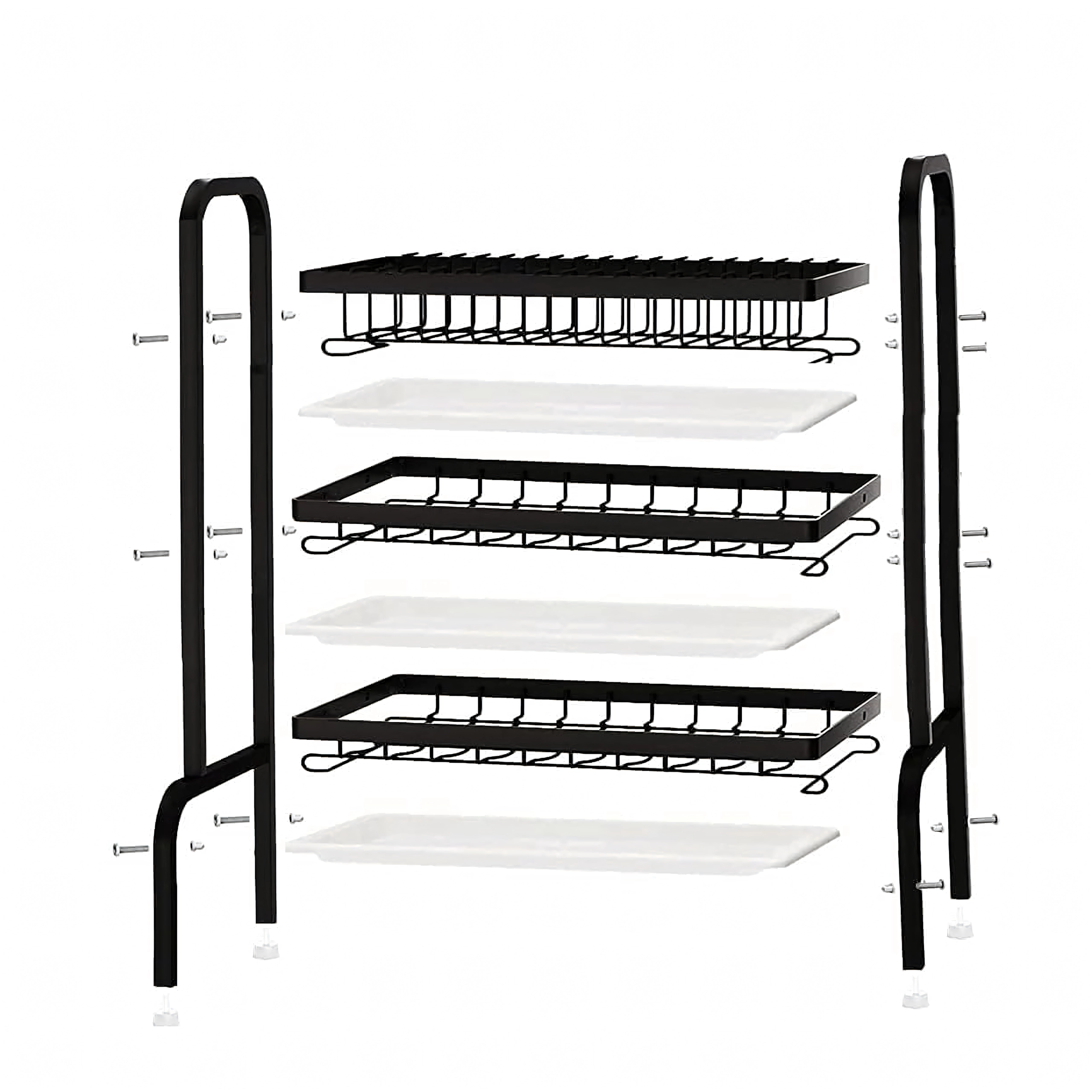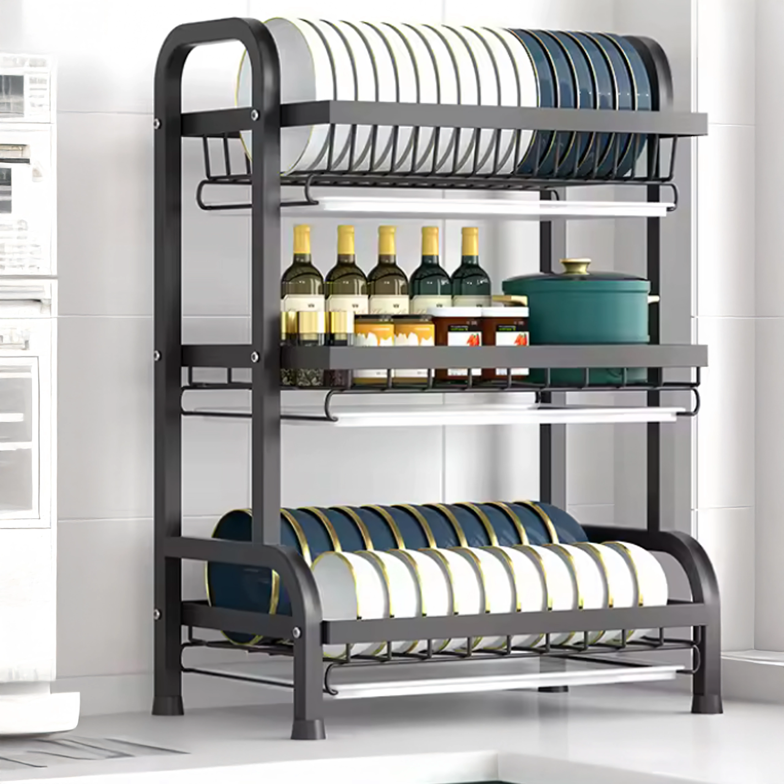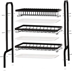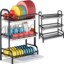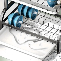 Sluoksniuotas išdėstymas suteikia atskirą vietą lėkštėms, dubenėliams, taurėms ir puodeliams, o atvira vielinė konstrukcija užtikrina greitą oro cirkuliaciją ir efektyvų džiovinimą. Sulankstomas sprendimas taupo vietą, kai nenaudojamas.