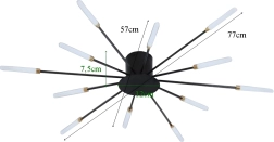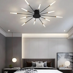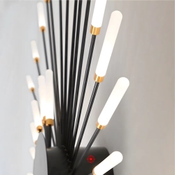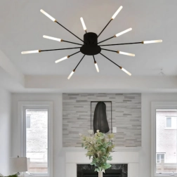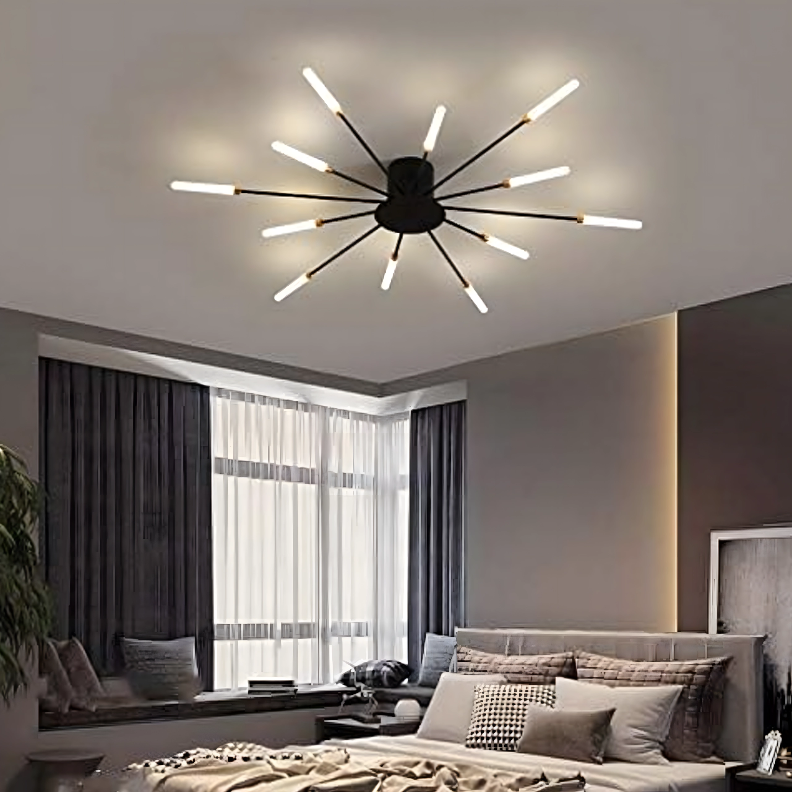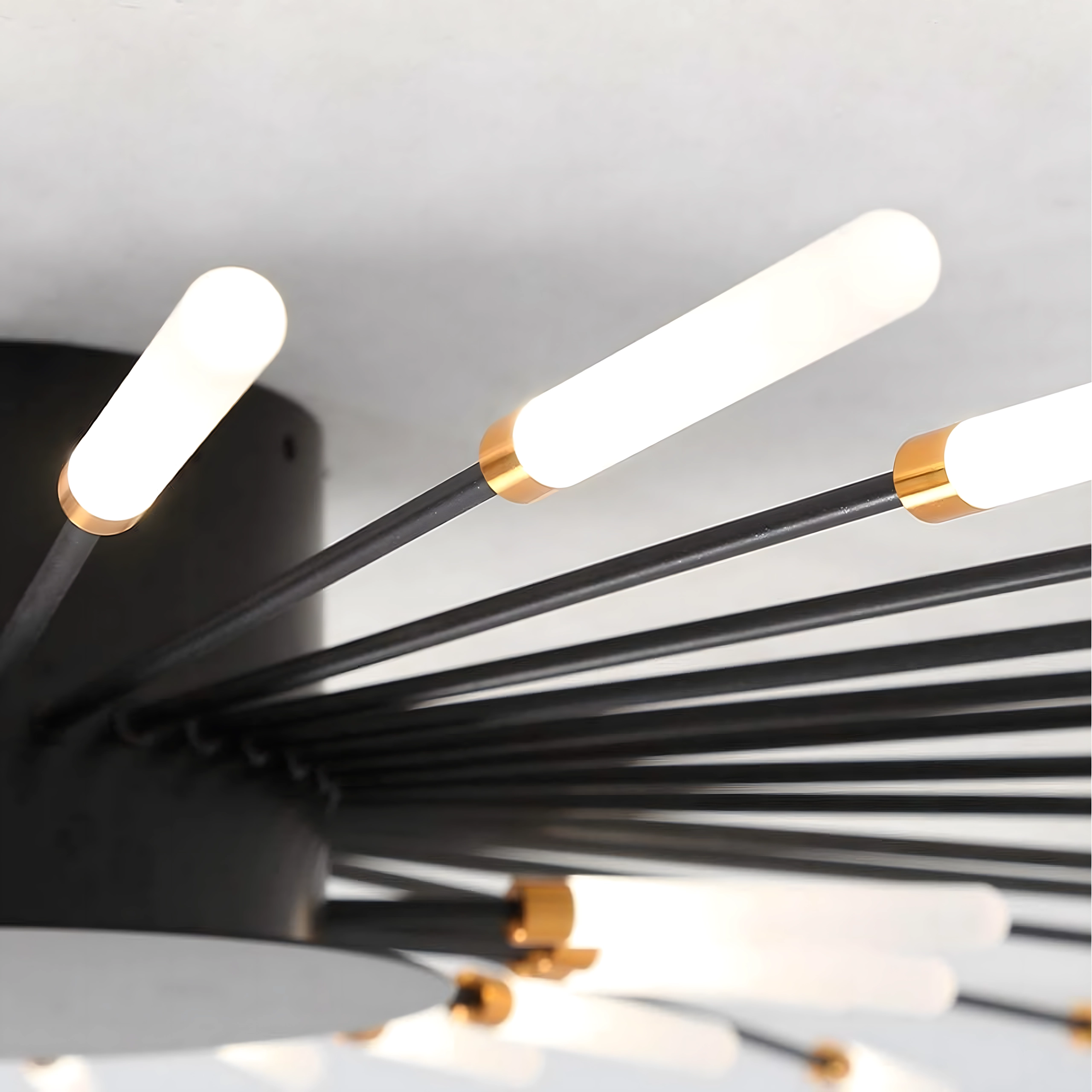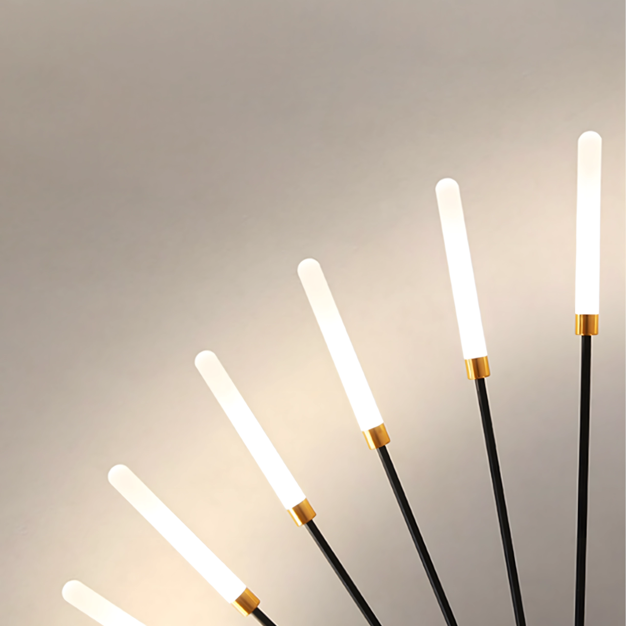 Stilingas lubinis šviestuvas su daugiašake konstrukcija sukuria fejerverkų efektą ir suteikia jūsų interjerui ryškų charakterį. Taupūs LED užtikrina tolygų aplinkos apšvietimą be akinimo, o matinė juoda ir auksinės detalės pabrėžia modernią estetiką.