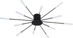 Modernus lubinis LED šviestuvas Fajerwerki 12W išsiskiria elegantišku sputnik dizainu su juodu matiniu paviršiumi ir auksiniais akcentais. Dėl integruotų LED šaltinių užtikrina ryškų ir taupų apšvietimą, idealiai tinkantį svetainei, valgomajam ir moderniems interjerams.
