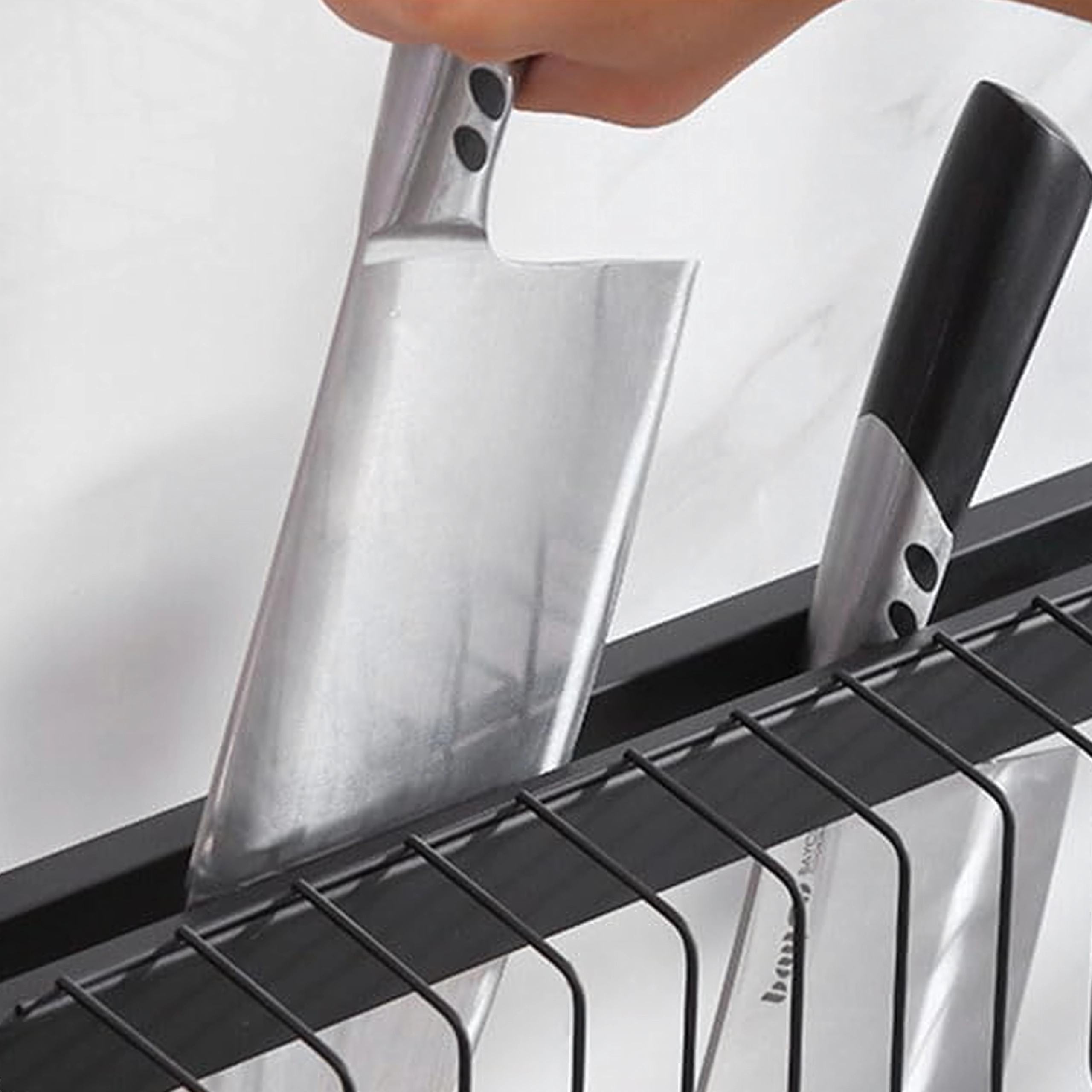 Pjaustymo lentelės laikiklis, stalo įrankių krepšelis, kabliukai įrankiams ar ploviklių laikiklis – viskas po ranka ir tvarkingai sudėta.